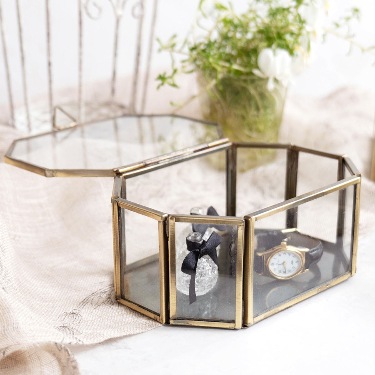 ●小物を美しく飾れるオクタゴン型のガラスボックスです。