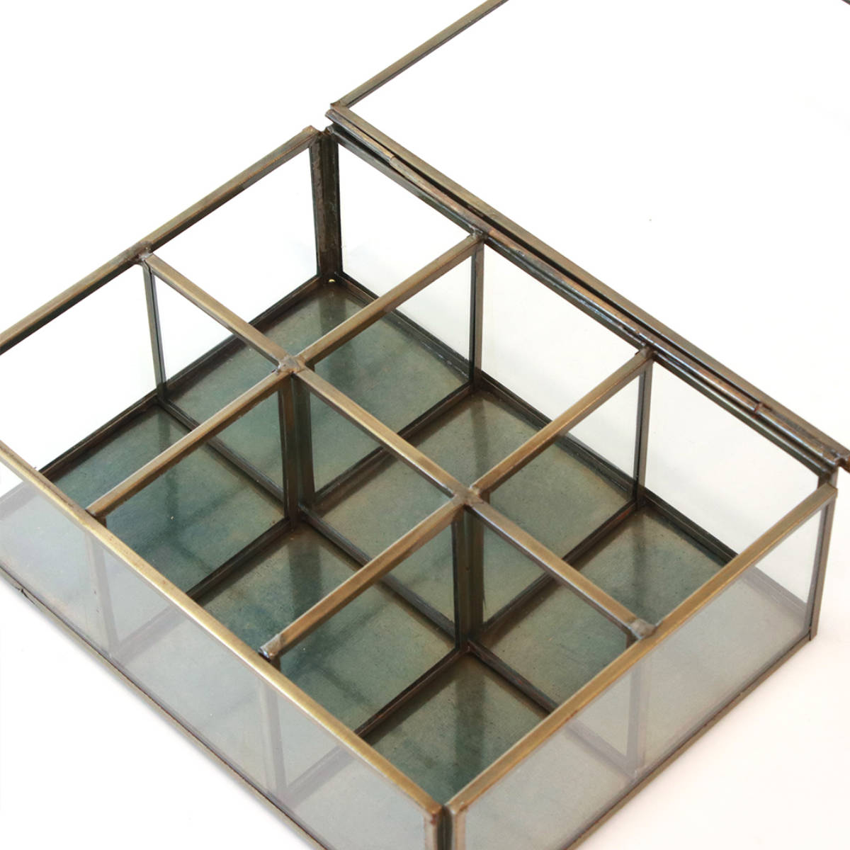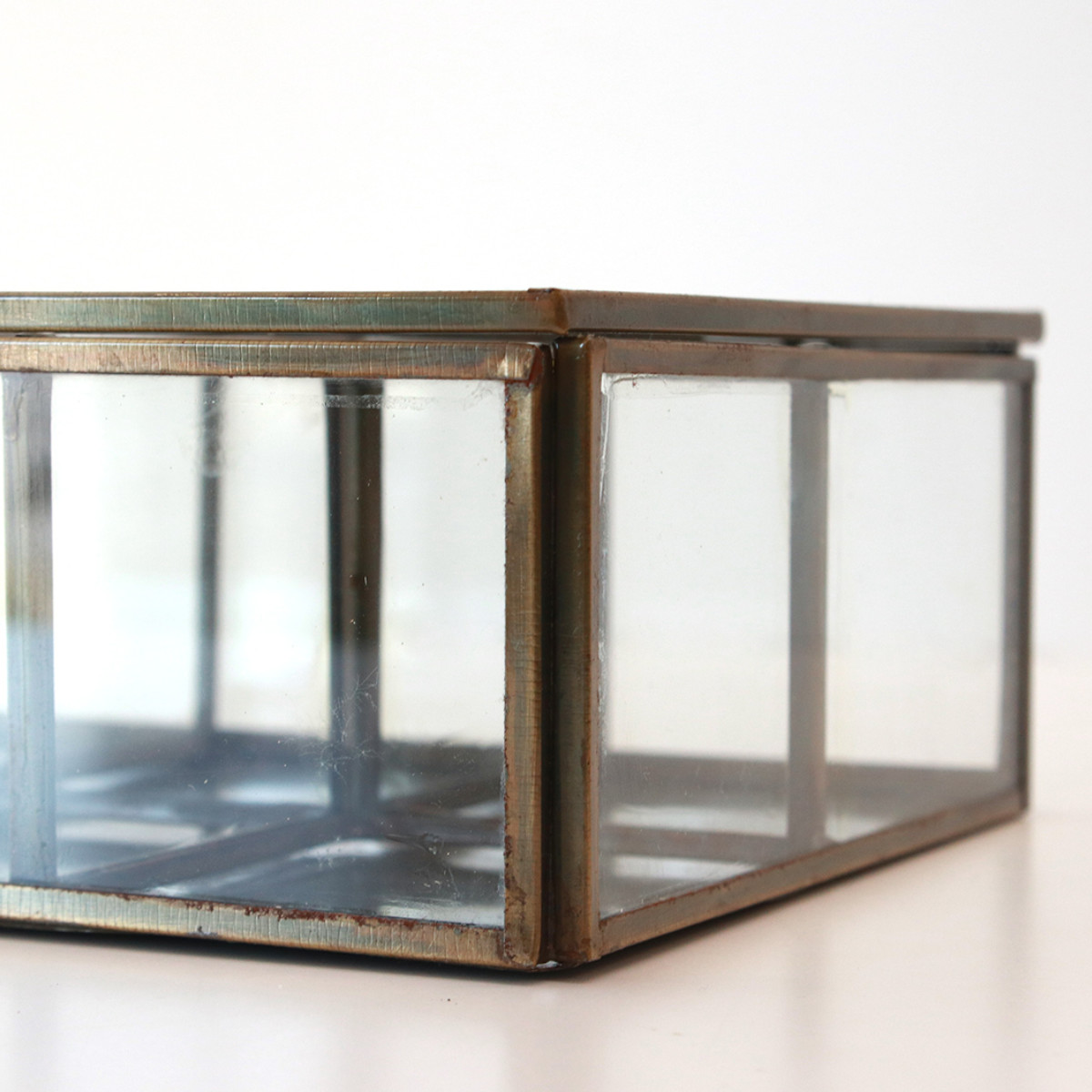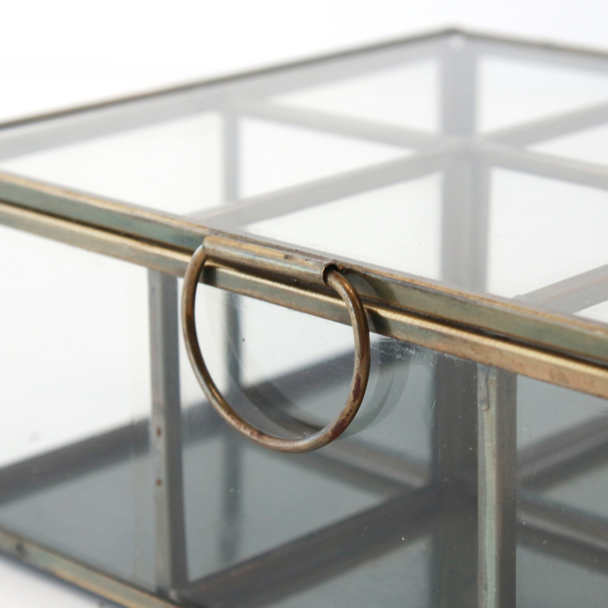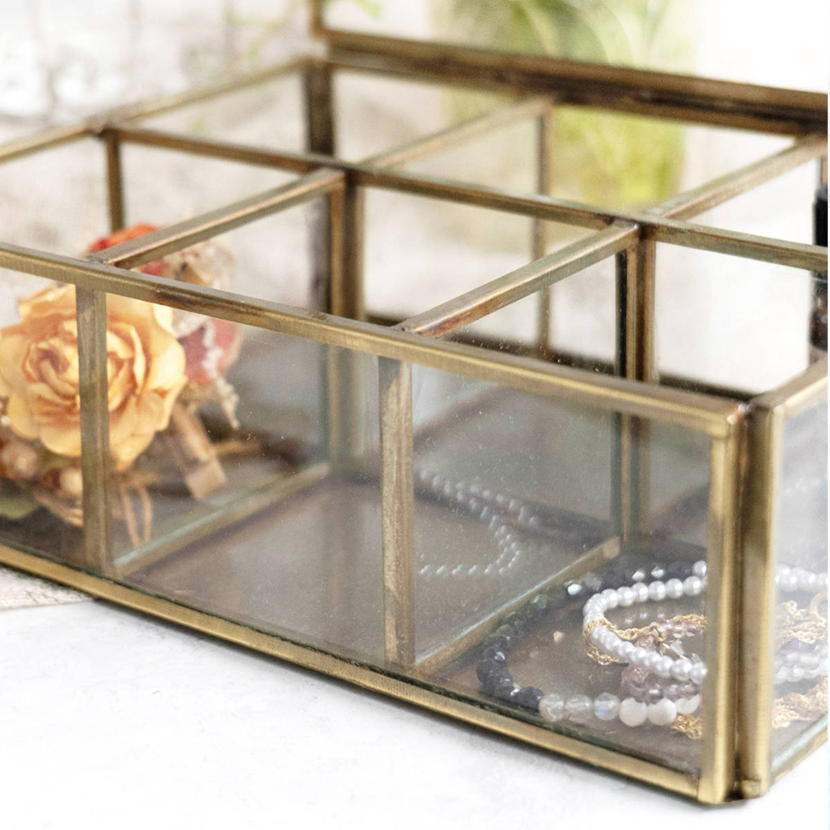 小物入れ モロッカン ガラスボックス スクエア L 仕切付き 幅19×奥行14×高さ6.5cm ( 収納 コレクションケース アンティーク風 ディスプレイ アクセサリー収納 アクセサリーケース アクセサリー 小物ケース アクセサリー入れ )