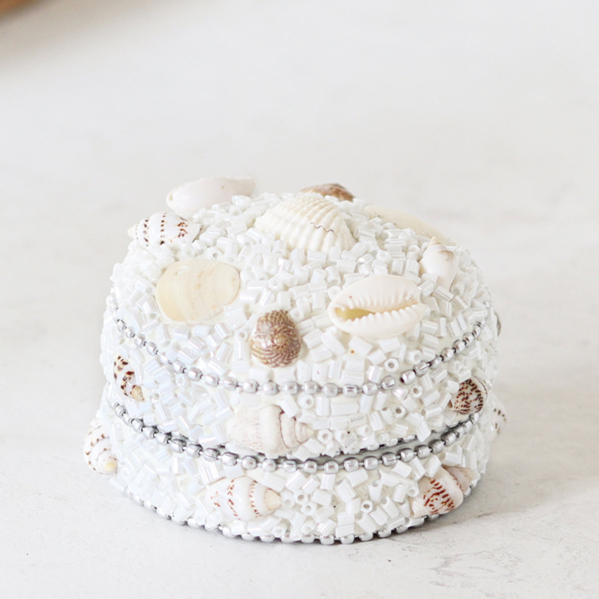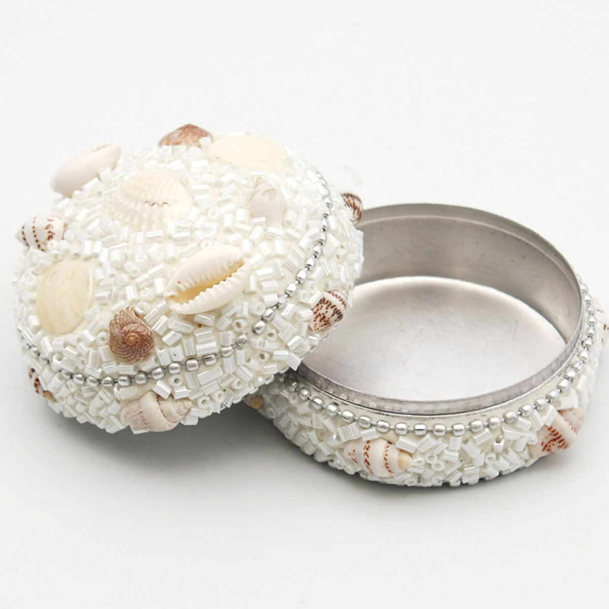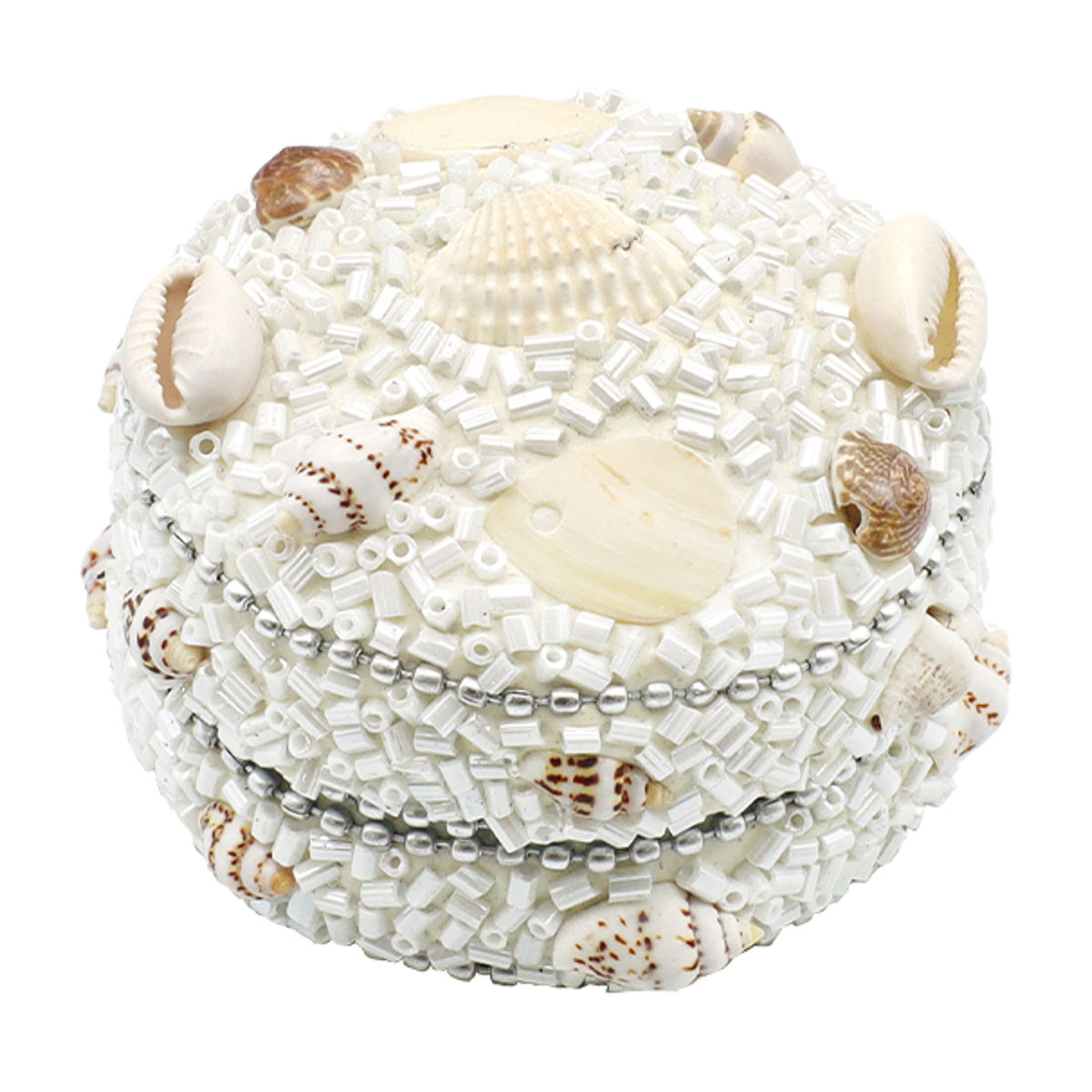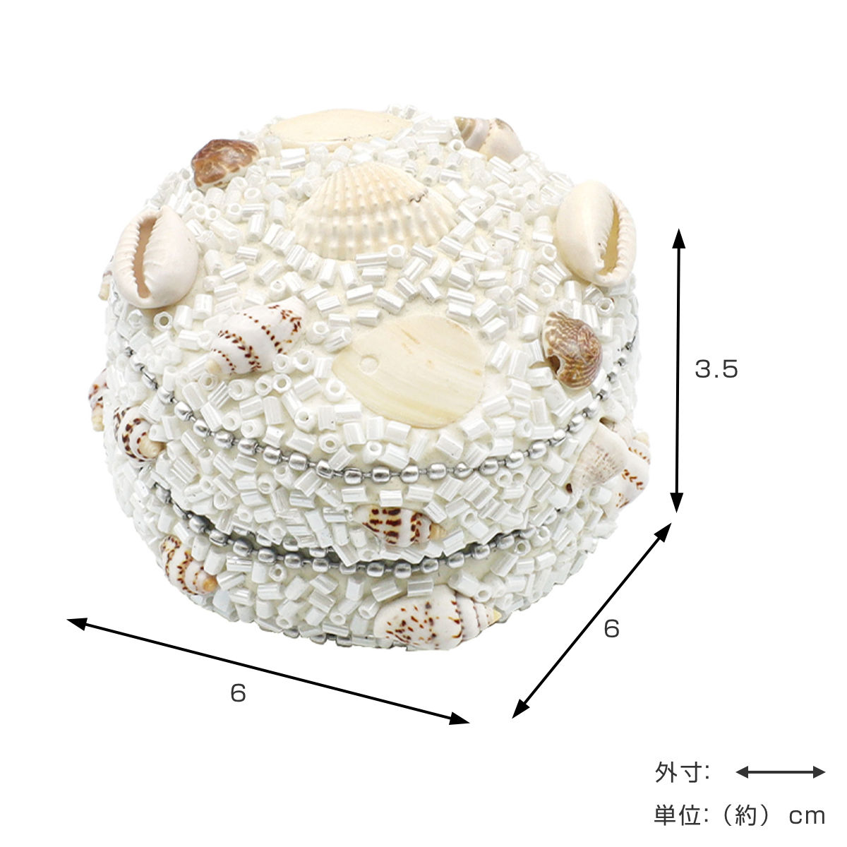 小物入れ ビーズラウンドボックス シェル S ふた付き 幅6×奥行6×高さ3.5cm ( 収納 収納ボックス ジュエリー アクセサリー ケース コンパクト アジアン雑貨 収納ケース アクセサリー収納 ディスプレイケース 貝殻 ビーズ )
