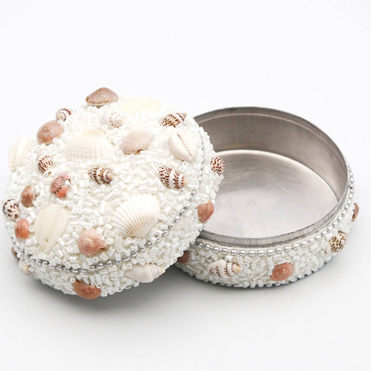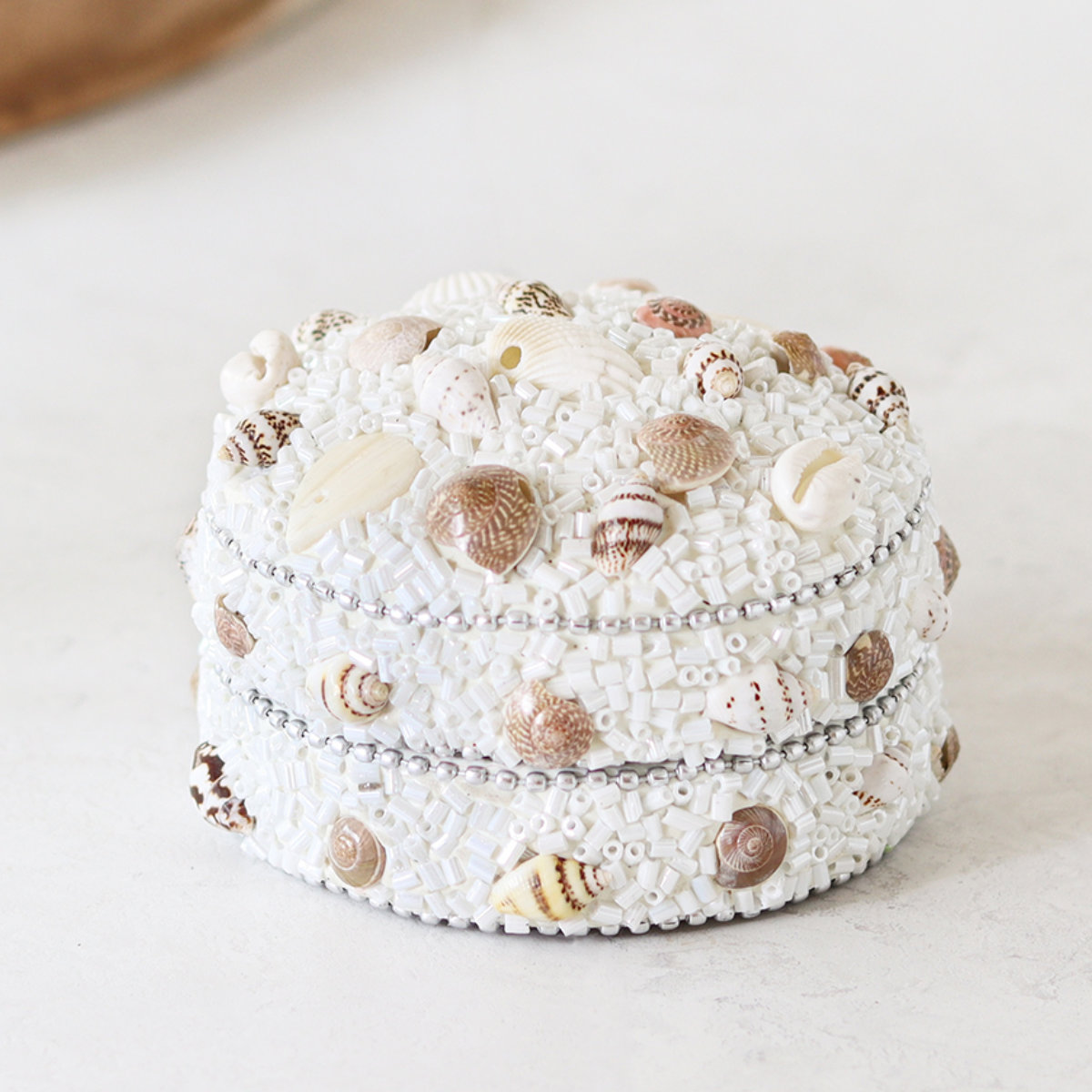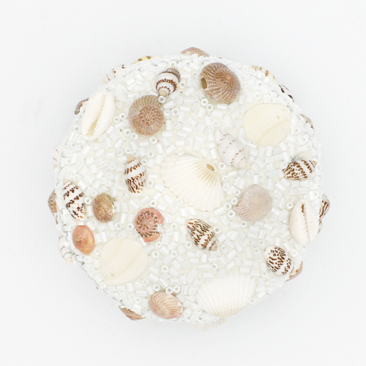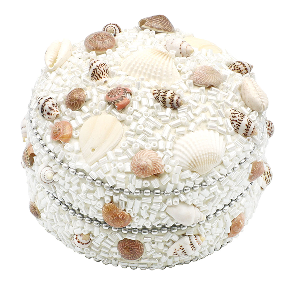 小物入れ ビーズラウンドボックス シェル L ふた付き 幅7.5×奥行7.5×高さ5cm ( 収納 収納ボックス ジュエリー アクセサリー ケース コンパクト アジアン雑貨 収納ケース アクセサリー収納 ディスプレイケース 貝殻 ビーズ )