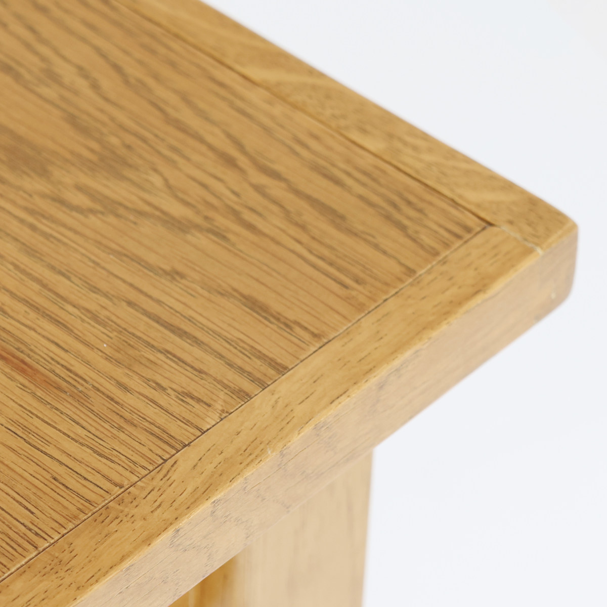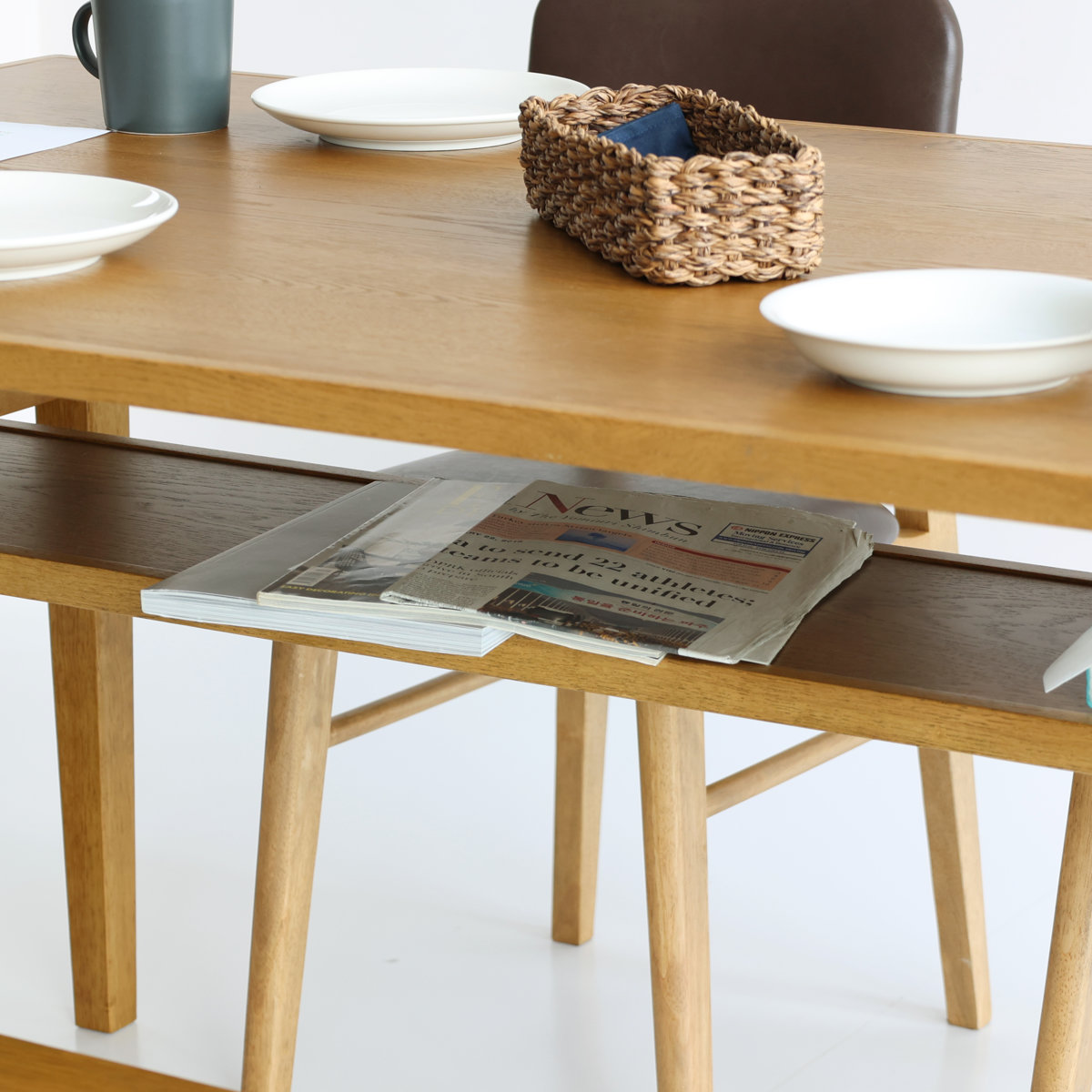 木の美しさを引き出すワイピング加工と、天板の縁に施したオーク無垢材の練り付けで、温かみと洗練された意匠性を演出しています。