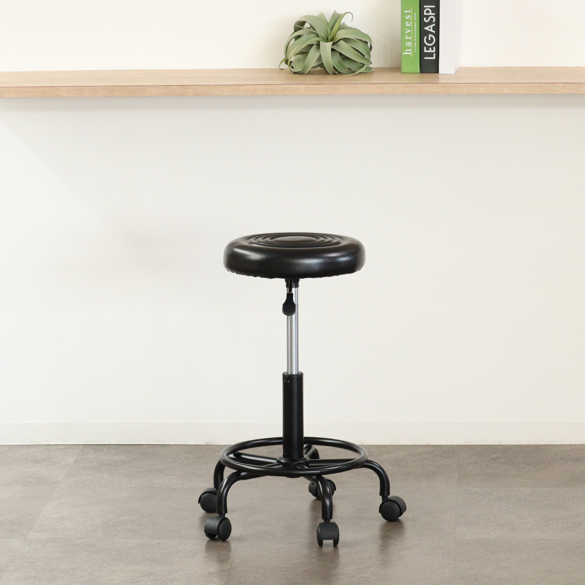 キャスターチェア 昇降式 背なしタイプ ブラックフレーム ( ワークチェア デスクチェア カウンターチェア 高さ調節 丸 足掛け シンプル 背もたれなし スツール 腰掛け )