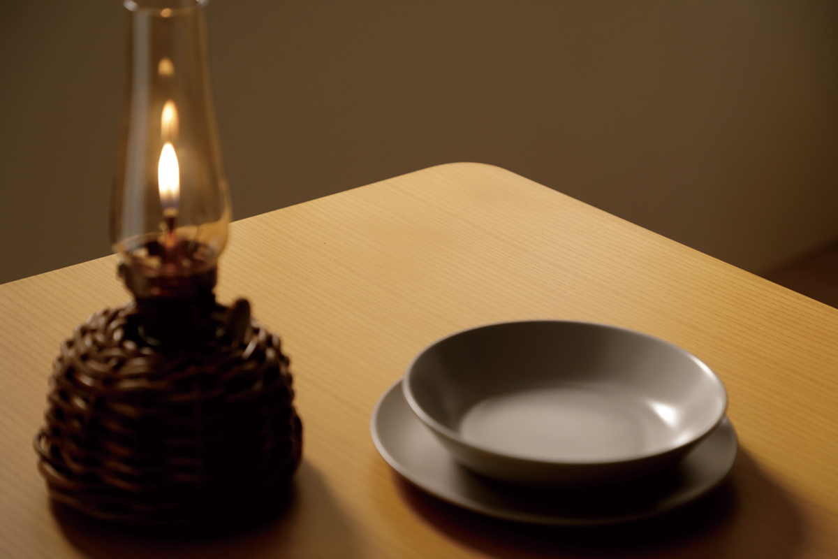 天板には、タモの突板に塗膜の硬いポリウレタン塗装を施しました。丈夫で傷に強いので、気軽に長くお使いいただけます。
