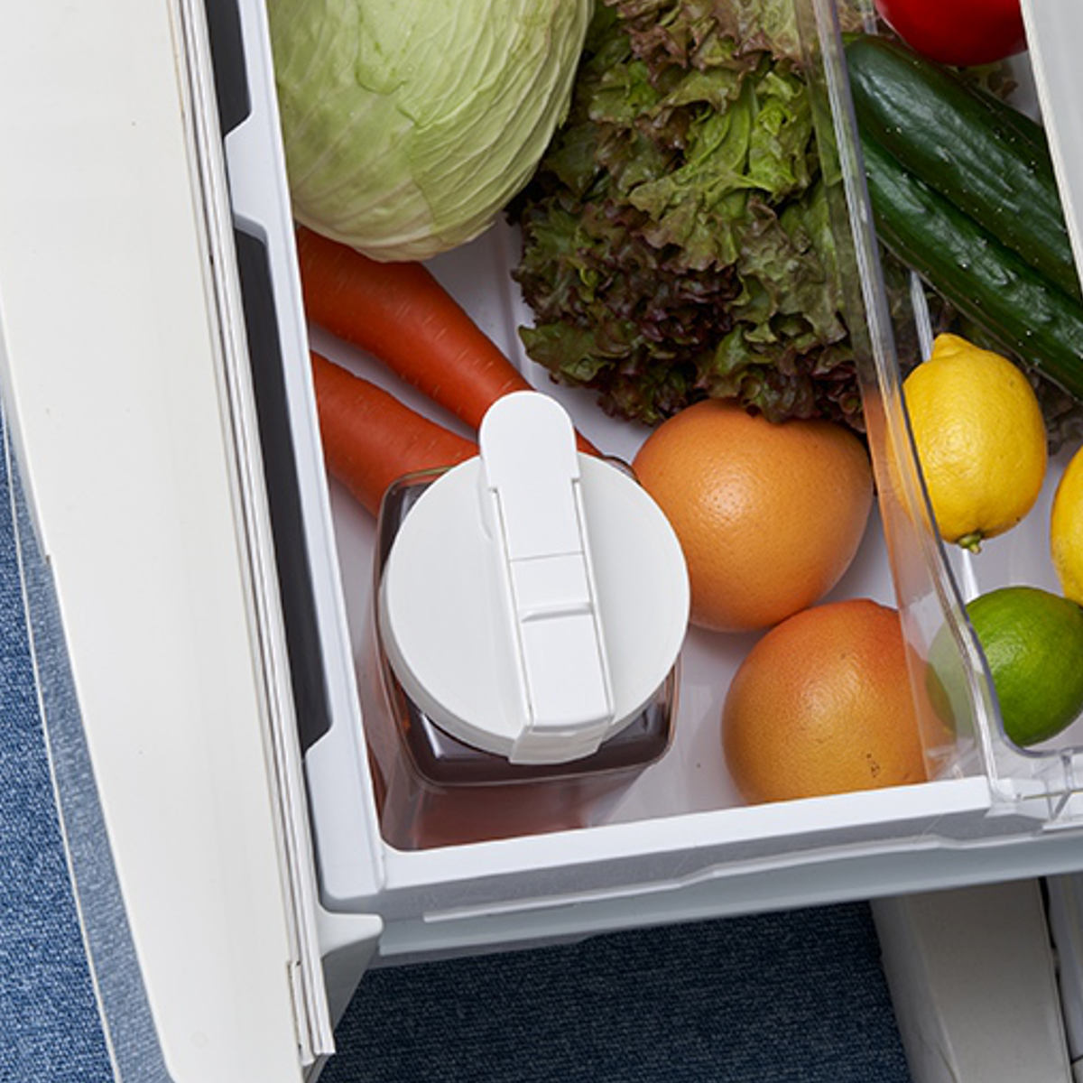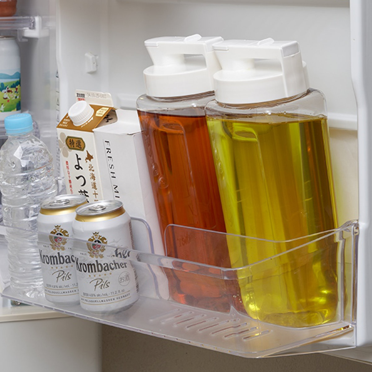 冷蔵庫のドアポケットにすっきり収まる冷水筒 2.1L