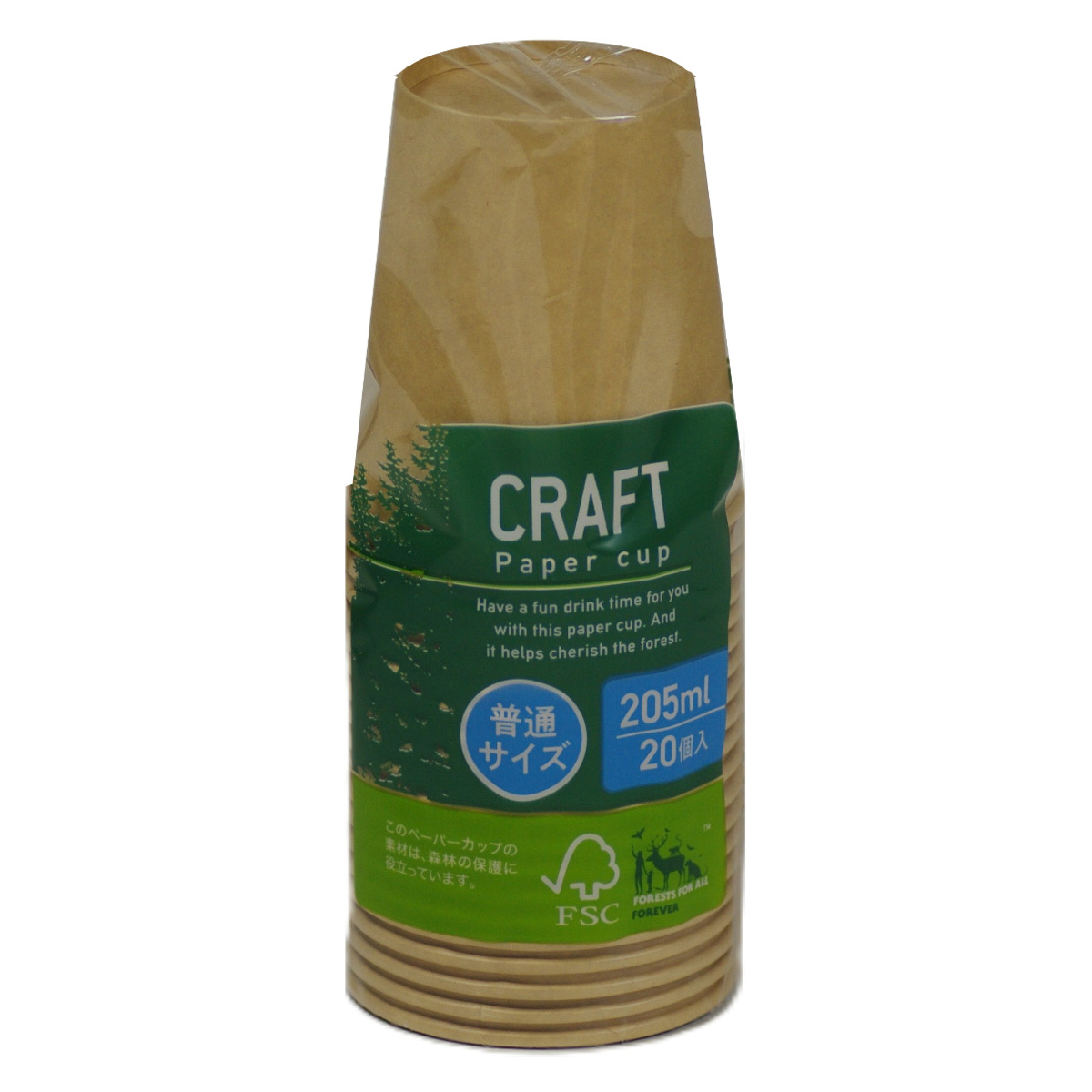 無漂白の紙コップで、森林資源保護に配慮した用いた容量205mlの紙コップです。ブラウンの落ち着いた色味がナチュラルな雰囲気を演出します。アウトドア、レジャー、ホームパーティーに最適です。2400個入なので大人数でのイベントにおすすめです。(1セットあたり20個入)