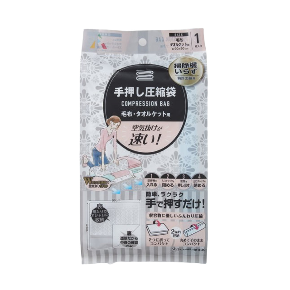圧縮袋 手押し圧縮袋 毛布 タオルケット 横90×縦90cm ( 布団圧縮袋 圧縮パック 布団収納 圧縮 布団袋 収納袋 円筒型 筒状 立つ 座布団 衣類 収納ケース 押入れ収納 シングル クローゼット収納 押し入れ収納 毛布・タオルケット用 )
