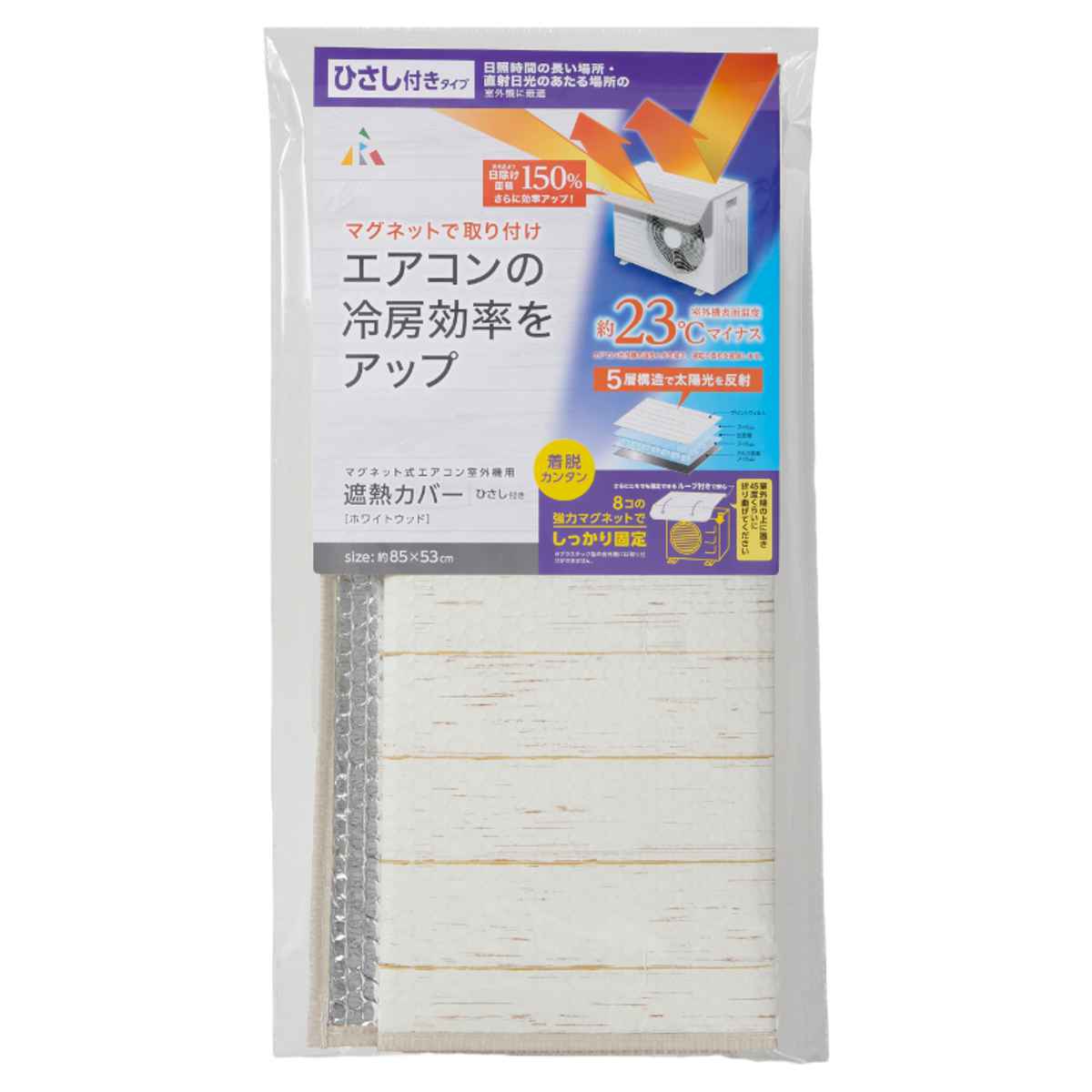 ベランダなどにも馴染みやすいホワイトウッドのデザインで、外観の邪魔をしません。約85×53cmのシート1枚+マグネット8個入り×2セットです。