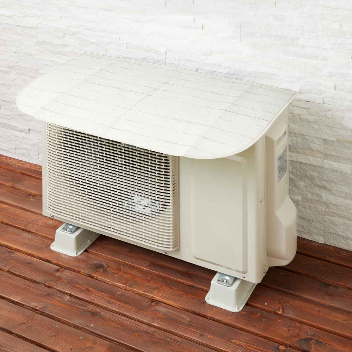 室外機の温度上昇を抑えることにより冷房運転中の室外機の負担を軽くします。室外機の放熱を妨げないので、ベランダのスミなど風通しが悪い場所の室外機に最適です。冷房効率を保つので、節電にもつながります。