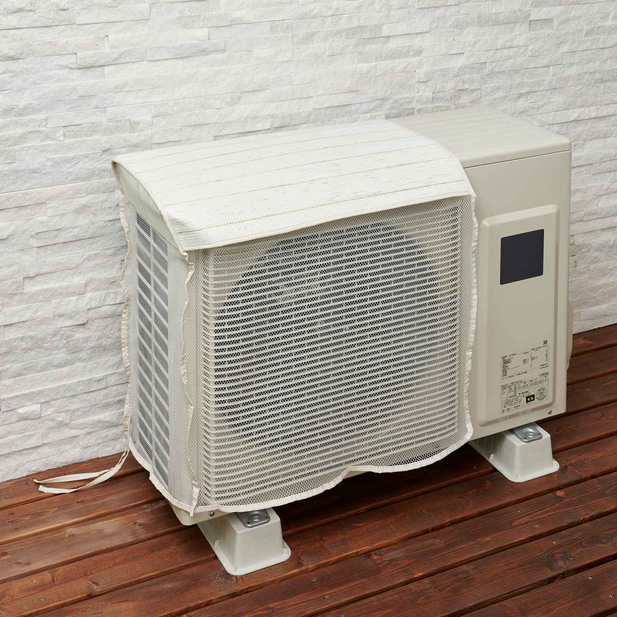 面ファスナーで、自宅の室外機に合わせてサイズ調整が可能です。また通気の良いメッシュなので、吸気・排気を妨げにくいです。