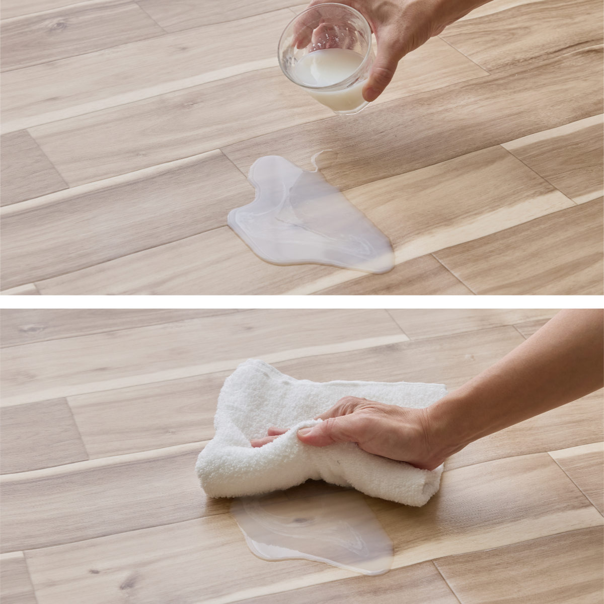 表面は毛足がないのでごみがラグに入り込むこともなく、掃除機やフロアモップで簡単に掃除ができます。水に強い素材で、汚れてもサッと拭き取れます。