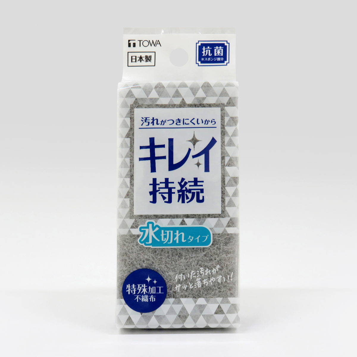 キッチンスポンジ キレイ持続 スポンジ 水切れタイプ ( 抗菌 日本製 台所用スポンジ 食器用スポンジ 食器洗いスポンジ スリム クリーナー 食器用クリーナー 食器用 皿洗い 水切れ 不織布 おしゃれ )