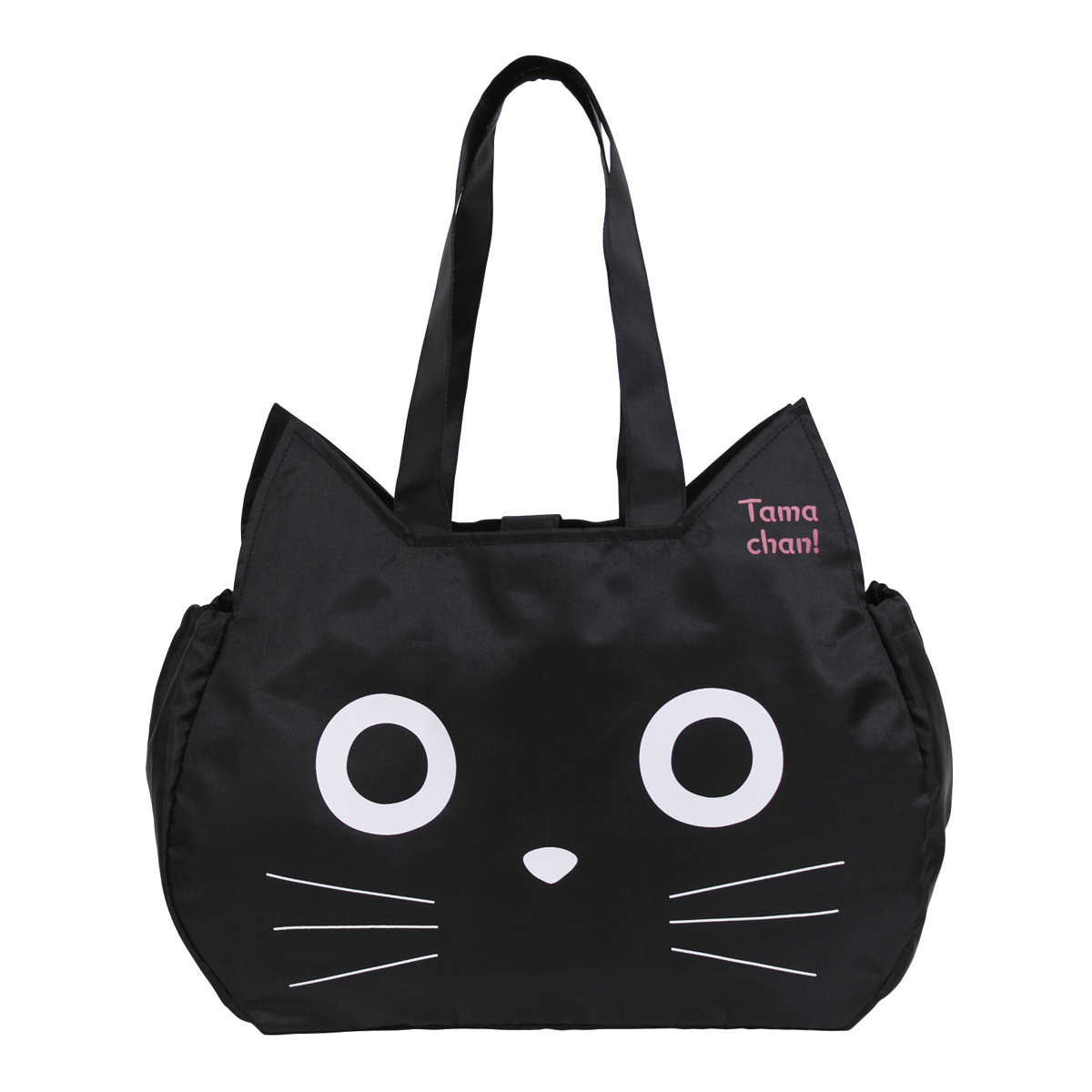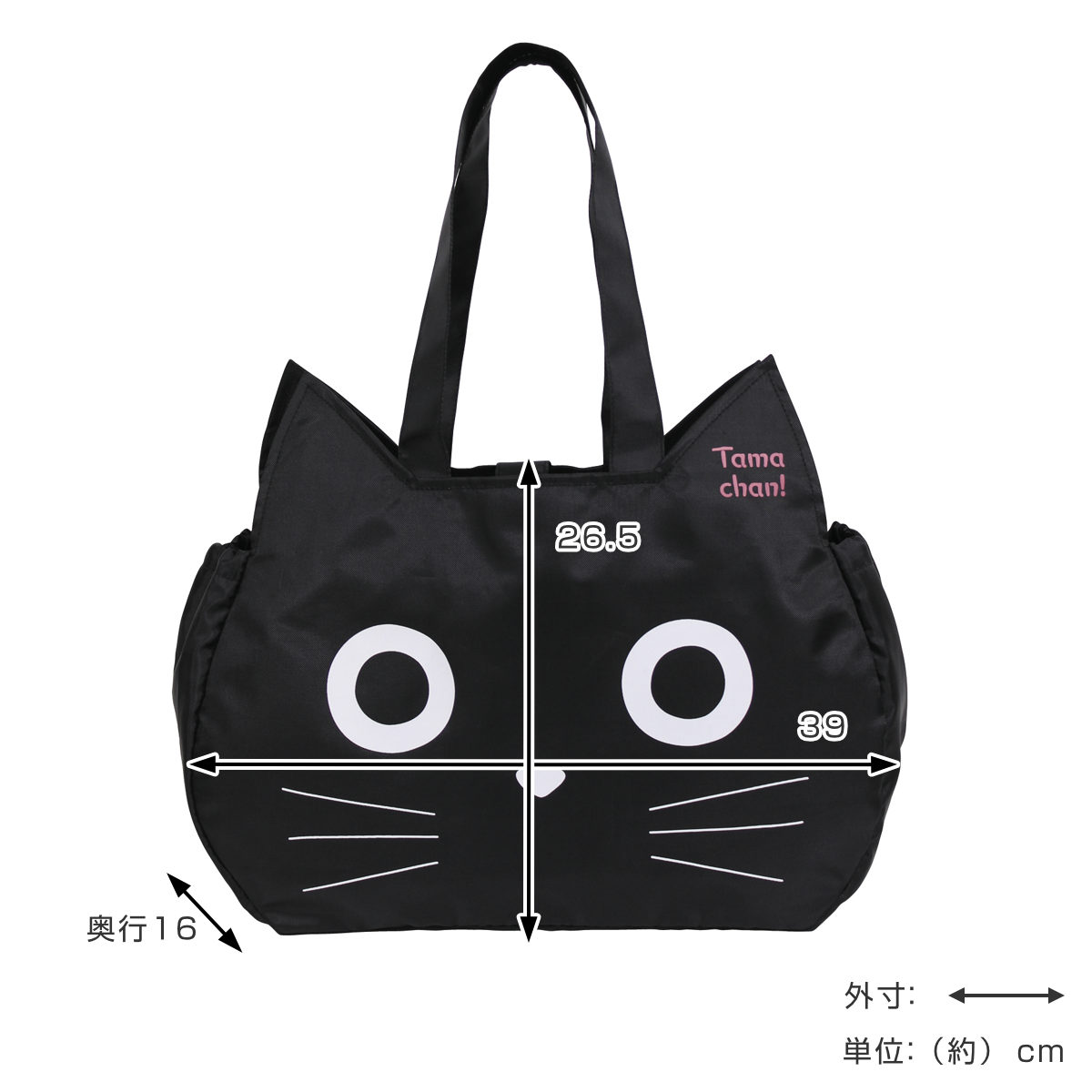 エコバッグ たまちゃん フェイス ネコ ダイカット ( マイバッグ エコバック マイバック レジ袋 コンパクト トート マチ 大容量 肩掛け 軽量 撥水 マチ広 スーパー コンビニ レジバッグ サブバッグ ショッピングバッグ ねこ型 )
