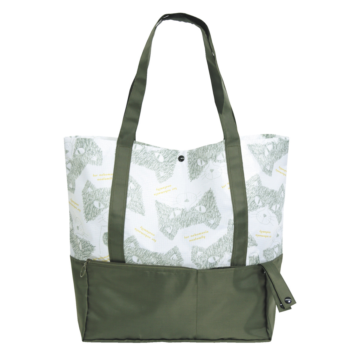 可愛いネコちゃんがデザインされたトート型のエコバッグです。日頃のお買い物にピッタリな大容量タイプ。マチもしっかりあるので、傾けたくないお肉やお惣菜も安心して持ち運びができます。また、開口部も大きいので物の出し入れがしやすく、お買い物の詰め替えが簡単です。