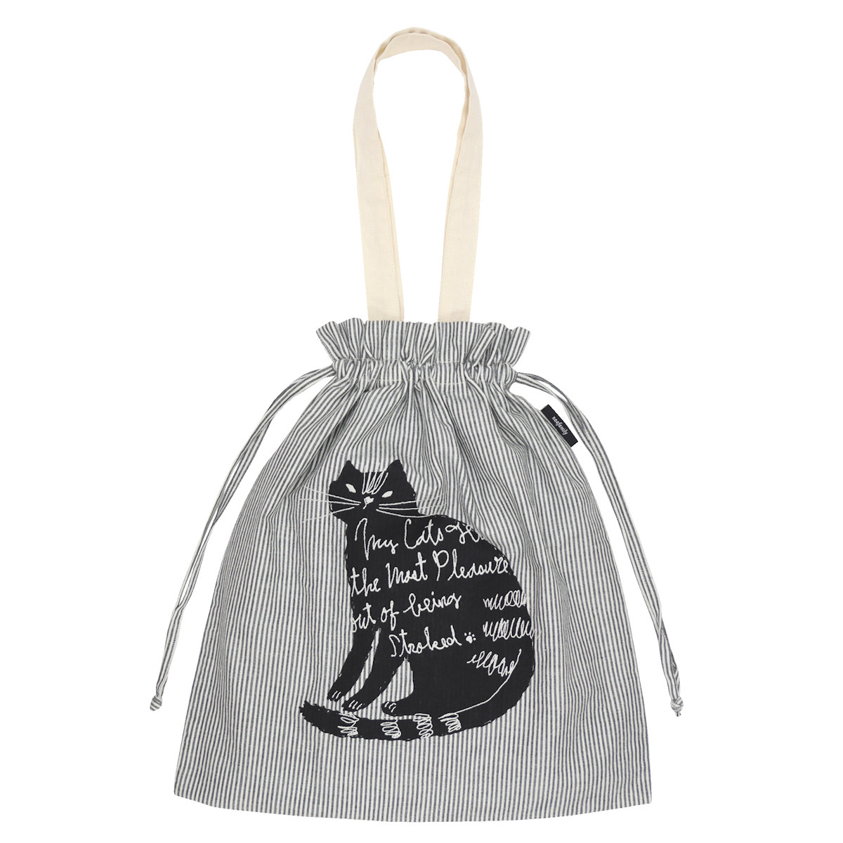 エコバッグ 巾着エコバッグ ネコ 持ち手付き ( マイバッグ サブバッグ 巾着 エコバック マイバック レジ袋 コンパクト トート 肩掛け コットン 綿 コンビニ レジバッグ ショッピングバッグ お稽古バッグ おしゃれ ) 【ストライプ】