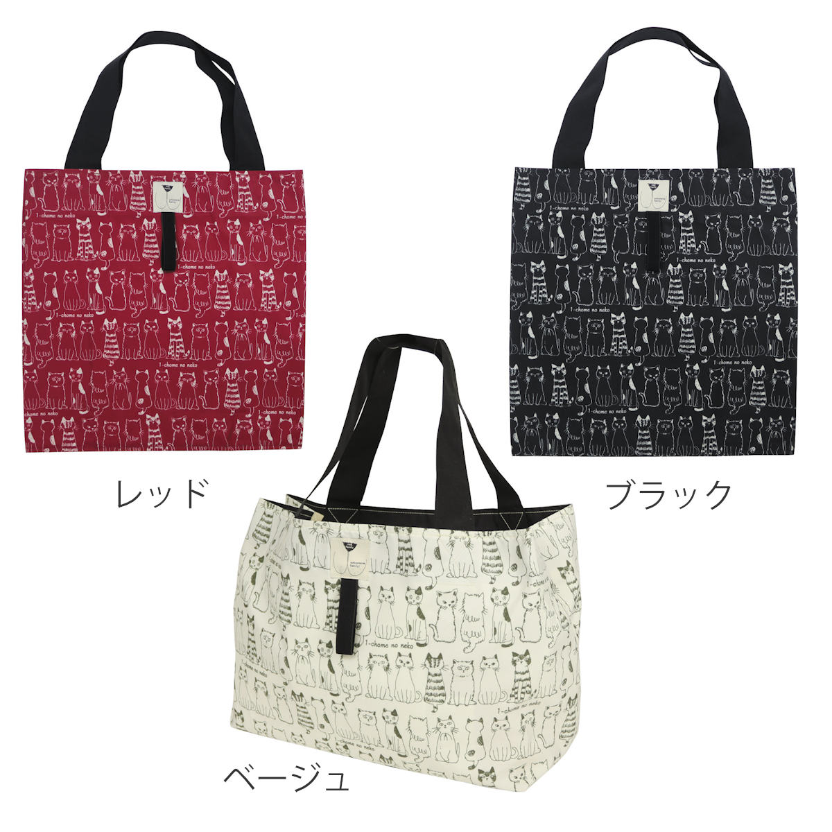 エコバッグ エコトートバッグ 大きめ ネコ ( マイバッグ サブバッグ エコバック マイバック レジ袋 コンパクト トート 肩掛け 大容量 撥水 折りたたみ マチ コンビニ レジバッグ ショッピングバッグ お稽古バッグ おしゃれ ) 【ベージュ】