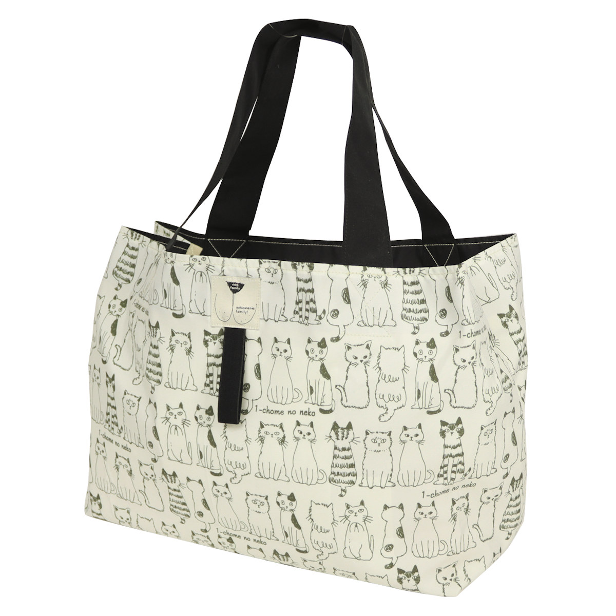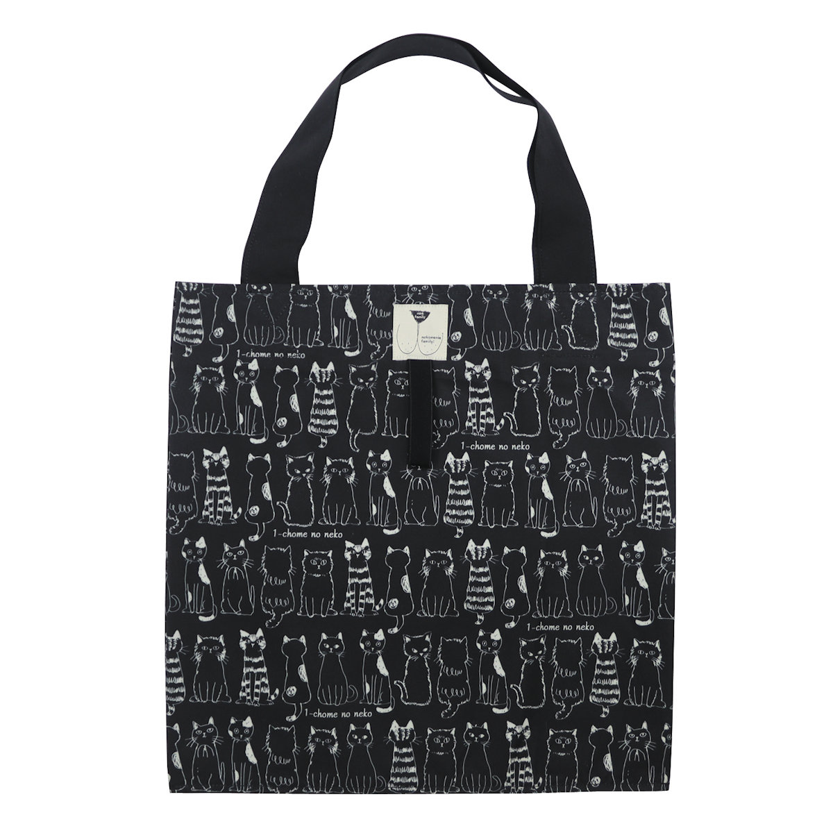 1丁目の猫たちがズラリと並んだ、シンプルで可愛いプリント柄のエコトートバッグです。スーパーのお買い物だけでなく、お出かけ時のサブバッグとしてもお使いいただけます。雑誌やA4ファイルも入るサイズなので様々なシーンで活用できます。