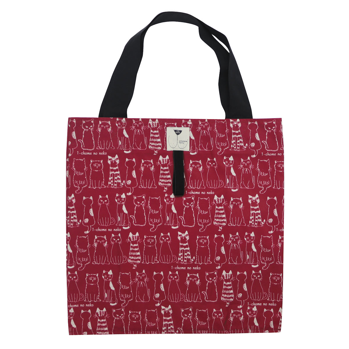 1丁目の猫たちがズラリと並んだ、シンプルで可愛いプリント柄のエコトートバッグです。スーパーのお買い物だけでなく、お出かけ時のサブバッグとしてもお使いいただけます。雑誌やA4ファイルも入るサイズなので様々なシーンで活用できます。