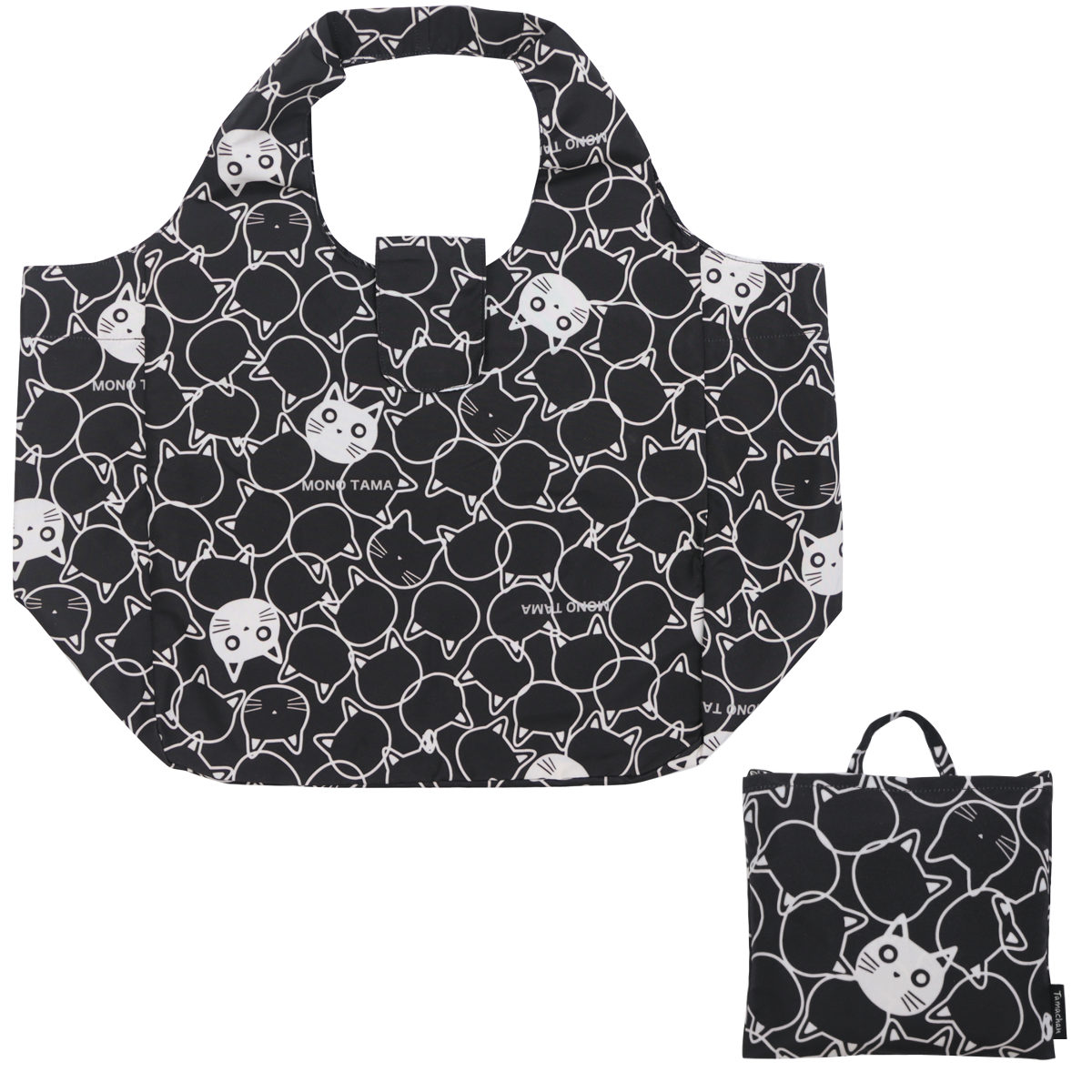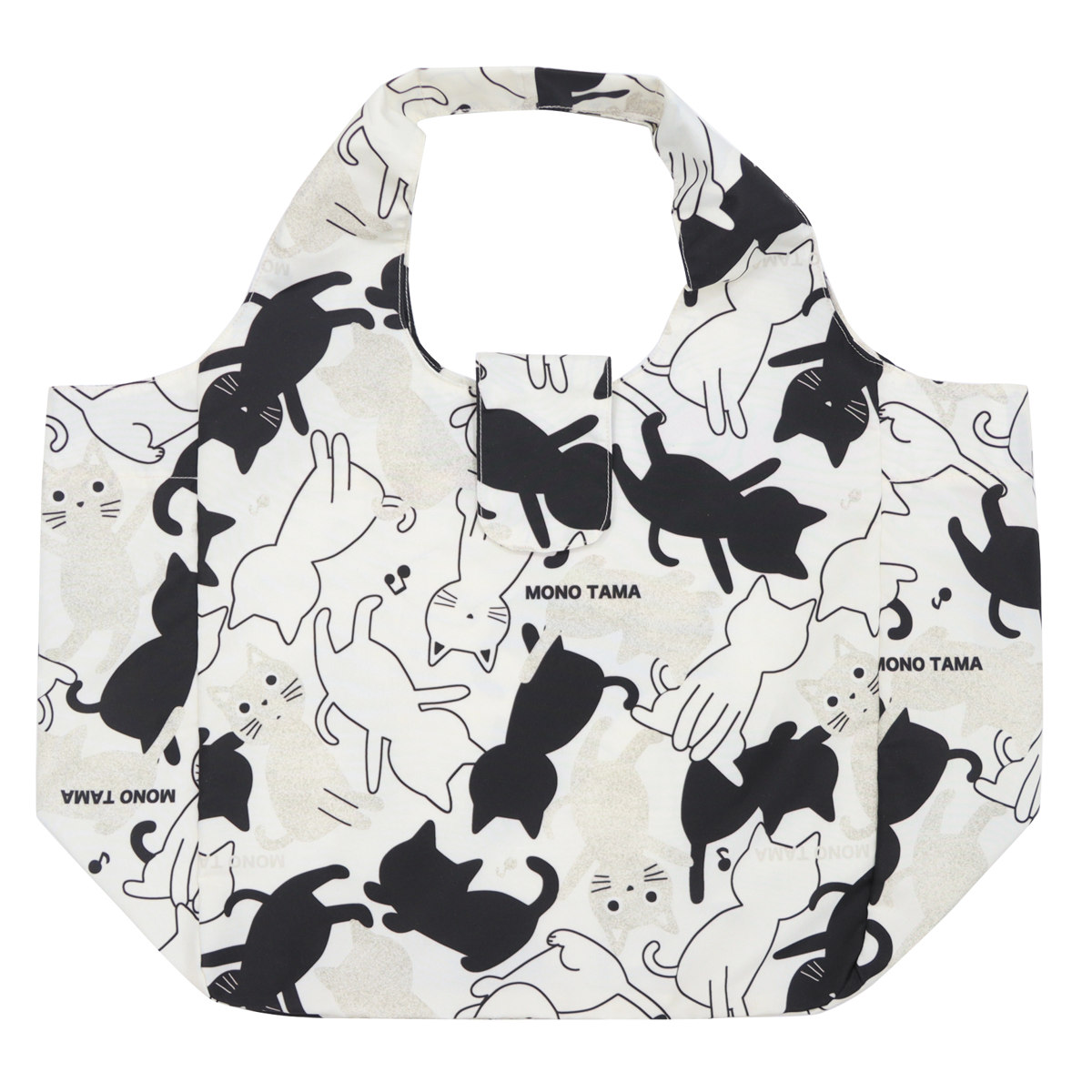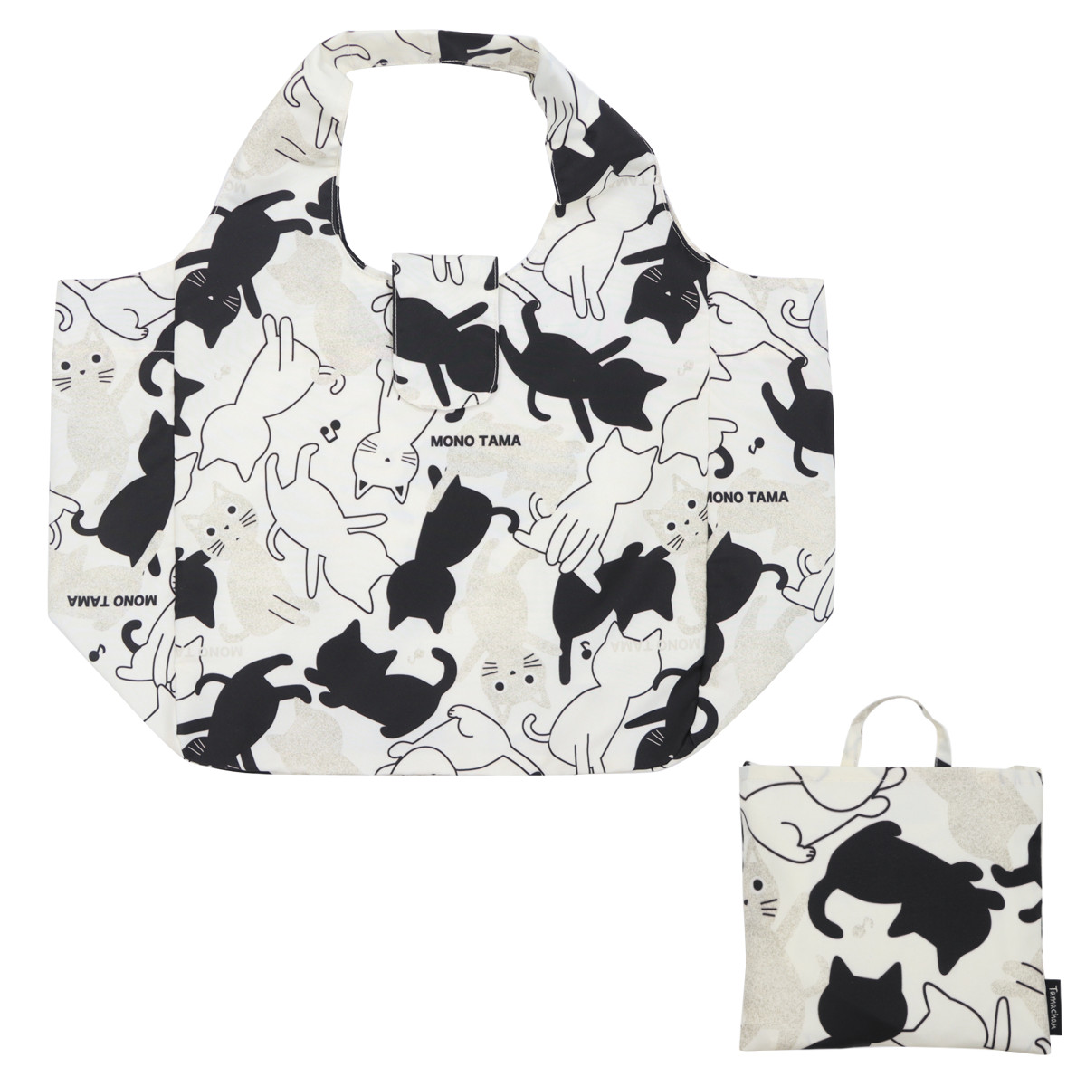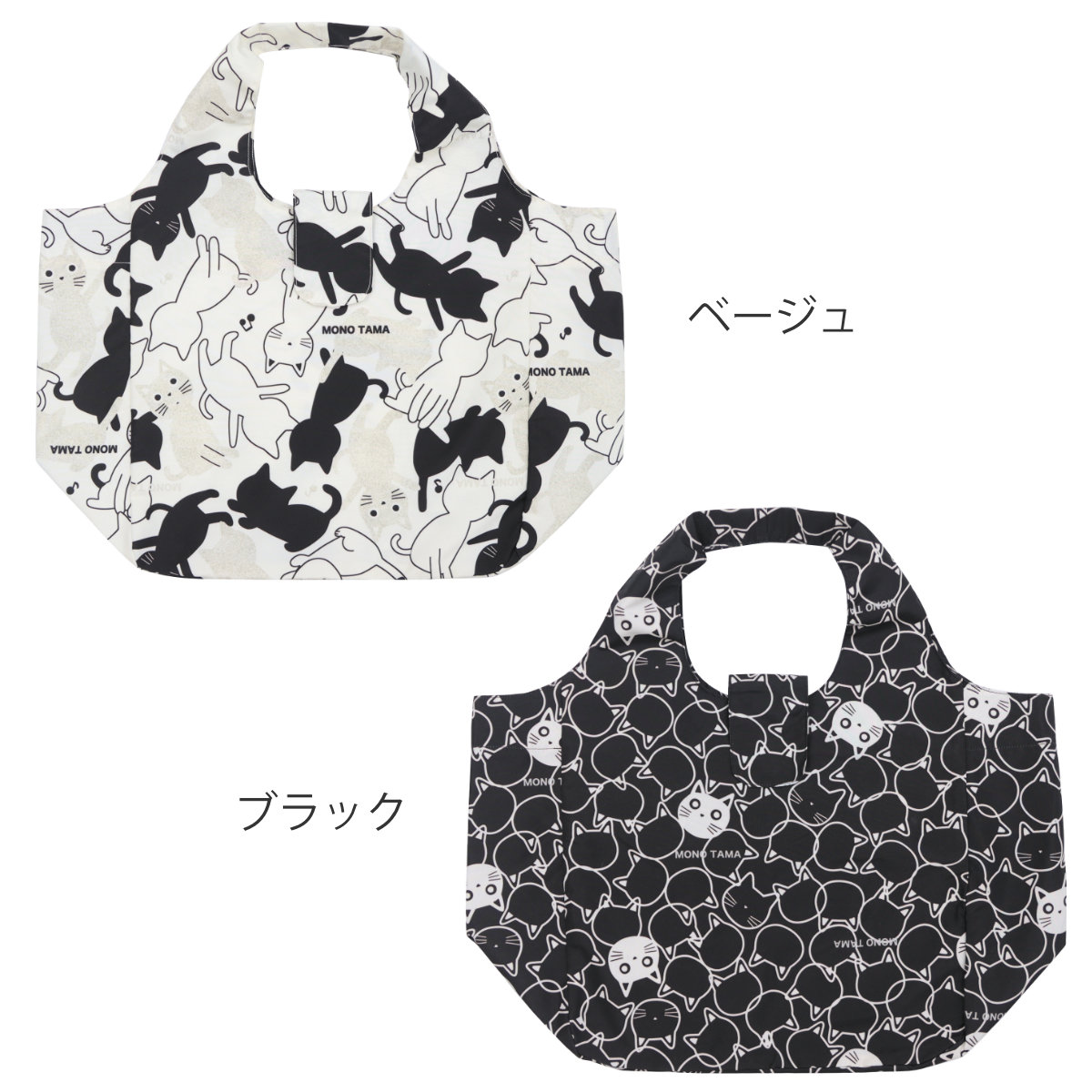 エコバッグ モノたま Lサイズ 面テープ止め ( マイバッグ エコバック マイバック レジ袋 コンパクト トート 折りたたみ マチ 大容量 撥水 軽量 レジバッグ サブバッグ 買い物バッグ ショッピングバッグ おしゃれ ネコ ) 【ベージュ】