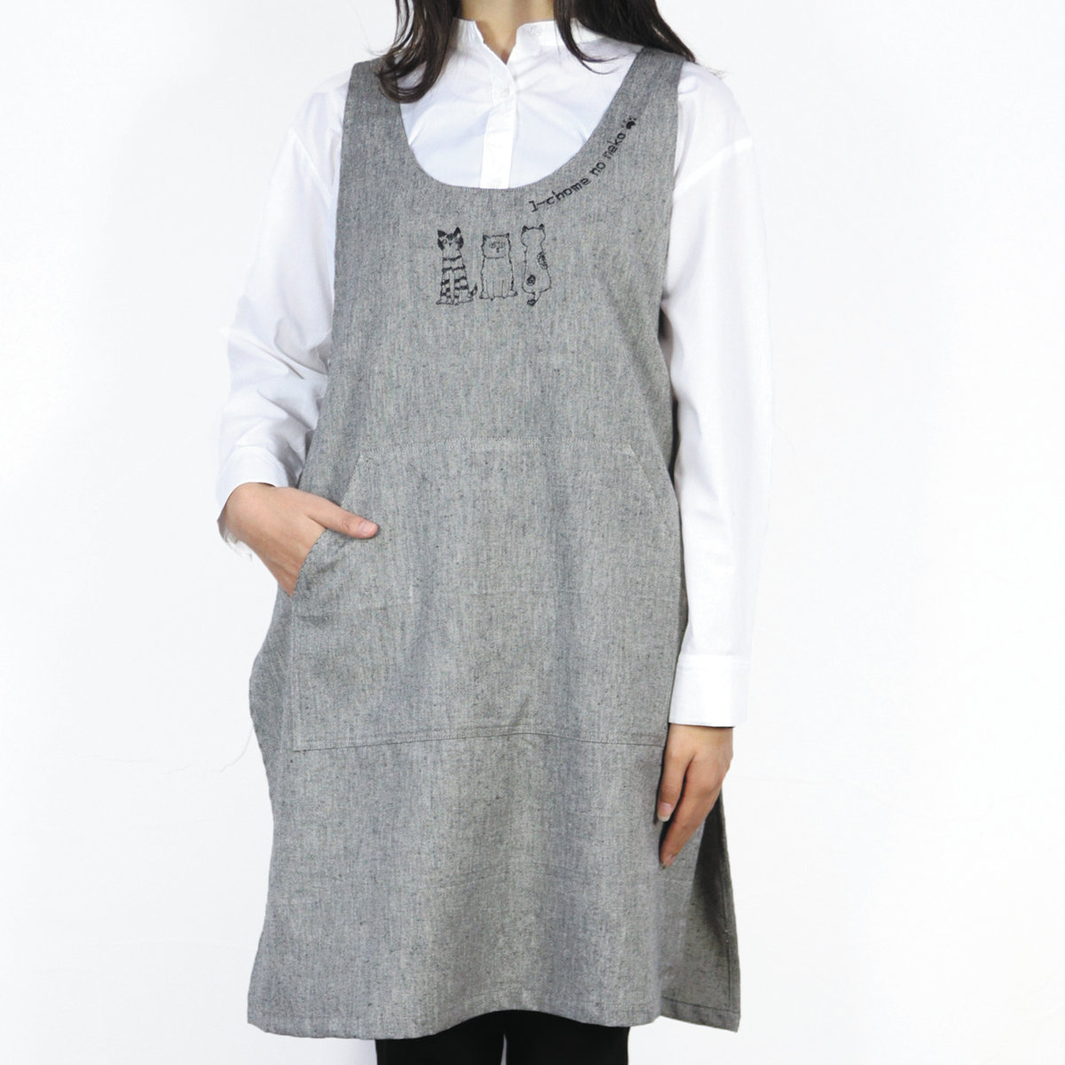 胸ポケットのネコ達の刺繍が楽しいエプロン