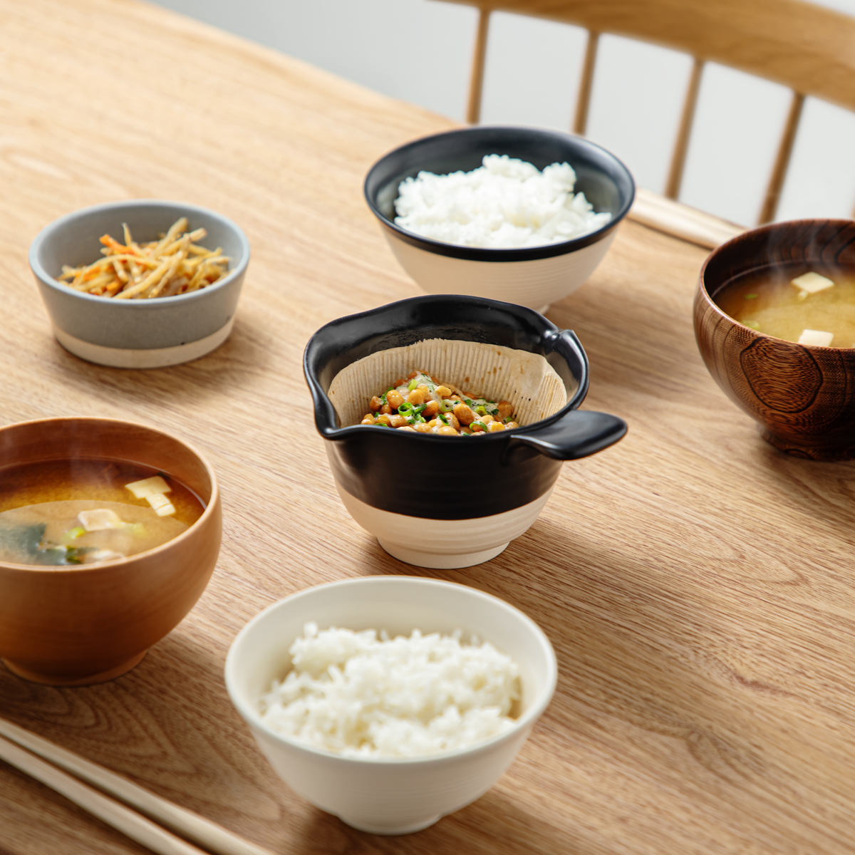 白と黒の2色展開です。日々の暮らしに溶け込む落ち着いたカラーとデザインは、和食・洋食問わずどんな食卓にも馴染みます。