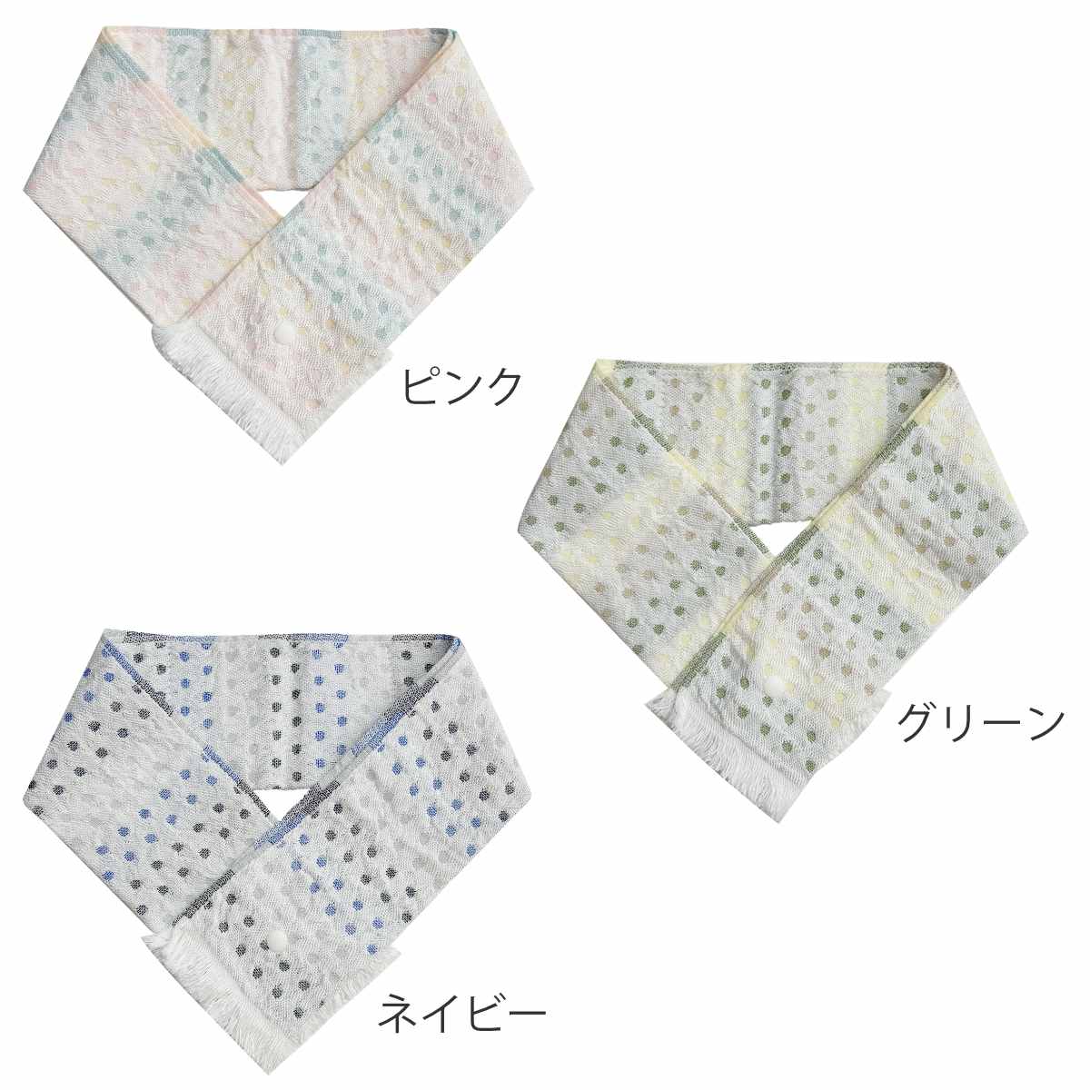冷感タオル ECO de クールシリーズ クールタオル 接触冷感 ボタン付き 保冷剤付き マフラータオル 8×65cm ( ポケットクールマフラー 接触 冷感 泉州タオル タオルマフラー 8×65 ひんやり 快適 熱中症対策 ドット柄 日本製 ) 【ネイビー】