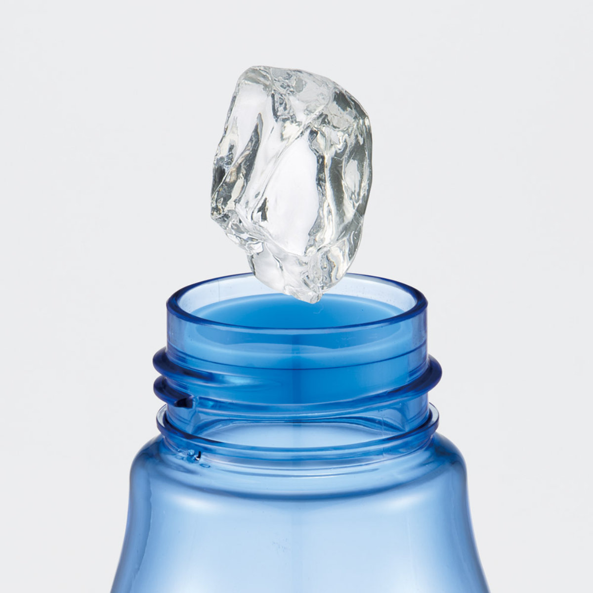 ボトルは広口なので大きな氷も入れやすくなっています。また、ボトルブラシが入れやすく、しっかり洗えて衛生的です。