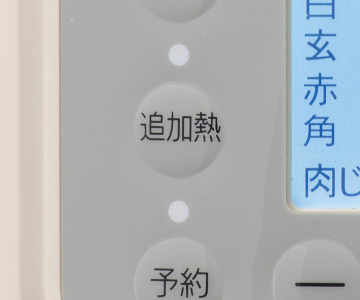 できあがると自動で70度前後に保温してくれます。アツアツが食べたい時は「追加熱キー」を押すと、温め直しができます。