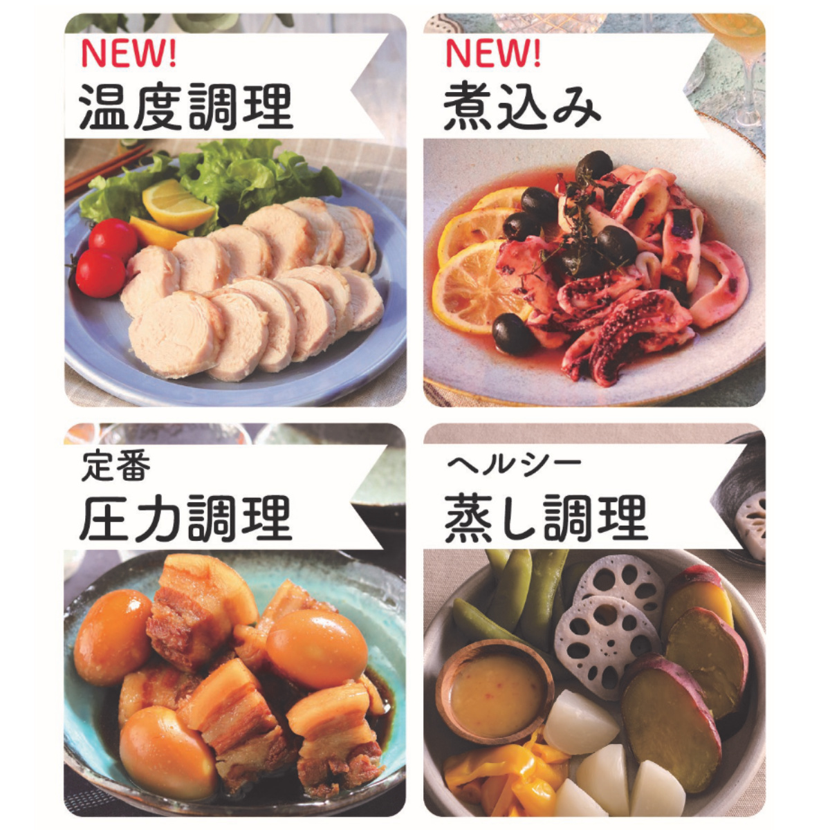 ●70~99度の煮込み調理で、圧力調理とは異なる食感の料理が楽しめます。