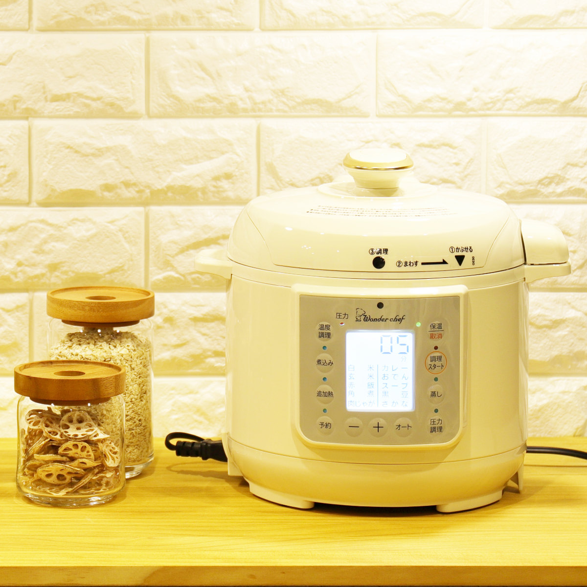 電気圧力鍋 3L マイコン 楽ポン ヌージュ ワンダーシェフ ( Wonderchef 圧力鍋 圧力式電気鍋 電気式圧力鍋 レシピ付き 圧力なべ 電気 圧力調理 調理家電 炊飯 白米 玄米 煮込み 温め直し 低温調理 保温 追加熱 )