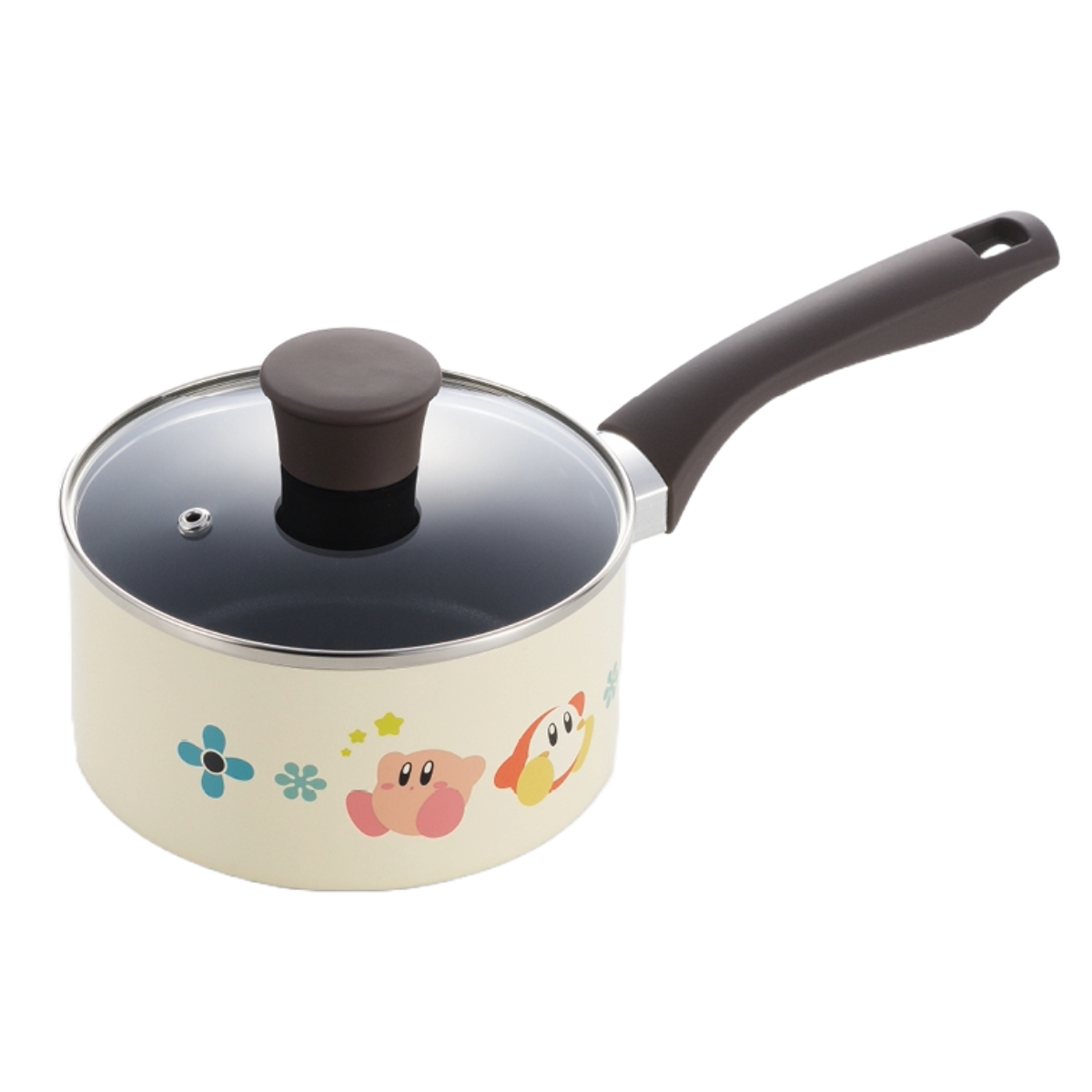 片手鍋 16cm IH対応 星のカービィ ( ガス火対応 ふっ素加工 フッ素加工 軽い 鍋 なべ 16センチ 片手なべ ミルクパン ガラス蓋 小鍋 フッ素コーティング アルミ製 軽量 可愛い キャラクター 調理器具 )