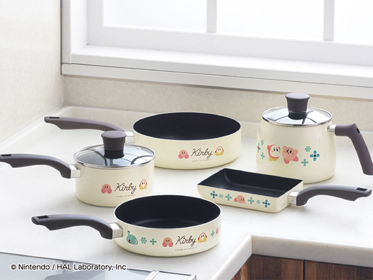 星のカービィのキッチンウェアシリーズには、卵焼き器、フライパン20cm、フライパン24cm、片手鍋、マルチクックパンがございます。シリーズで揃えれば、キッチンが一気にハッピーな雰囲気になります。
