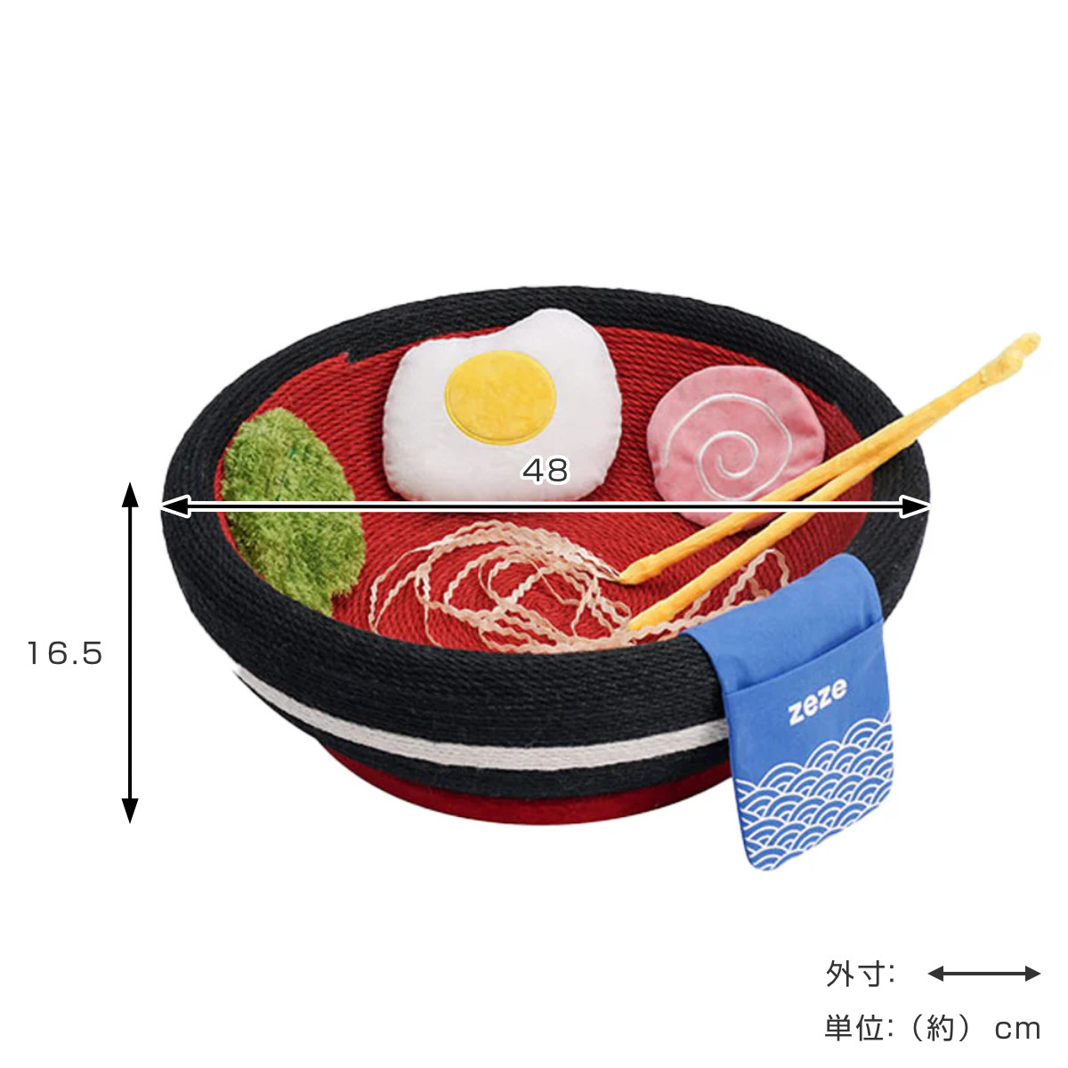 ねこちゃんが思う存分転がり回れる大きさと、遊び心満載のラーメンボウルの猫ベッドです。