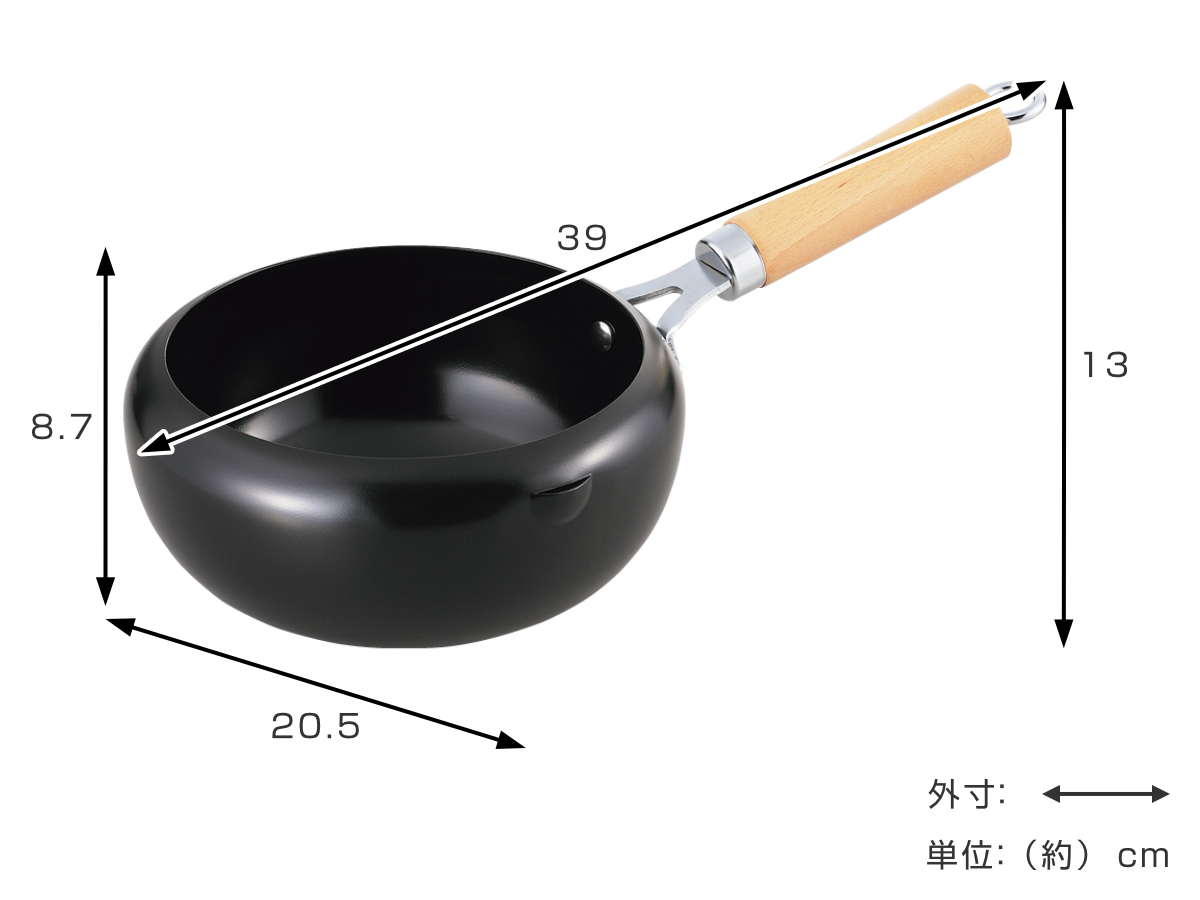 | サイズ | 約 幅20.5×奥行39×高さ13(cm) 鍋の深さ:約 8.7cm 底の厚さ:約 1.2mm |