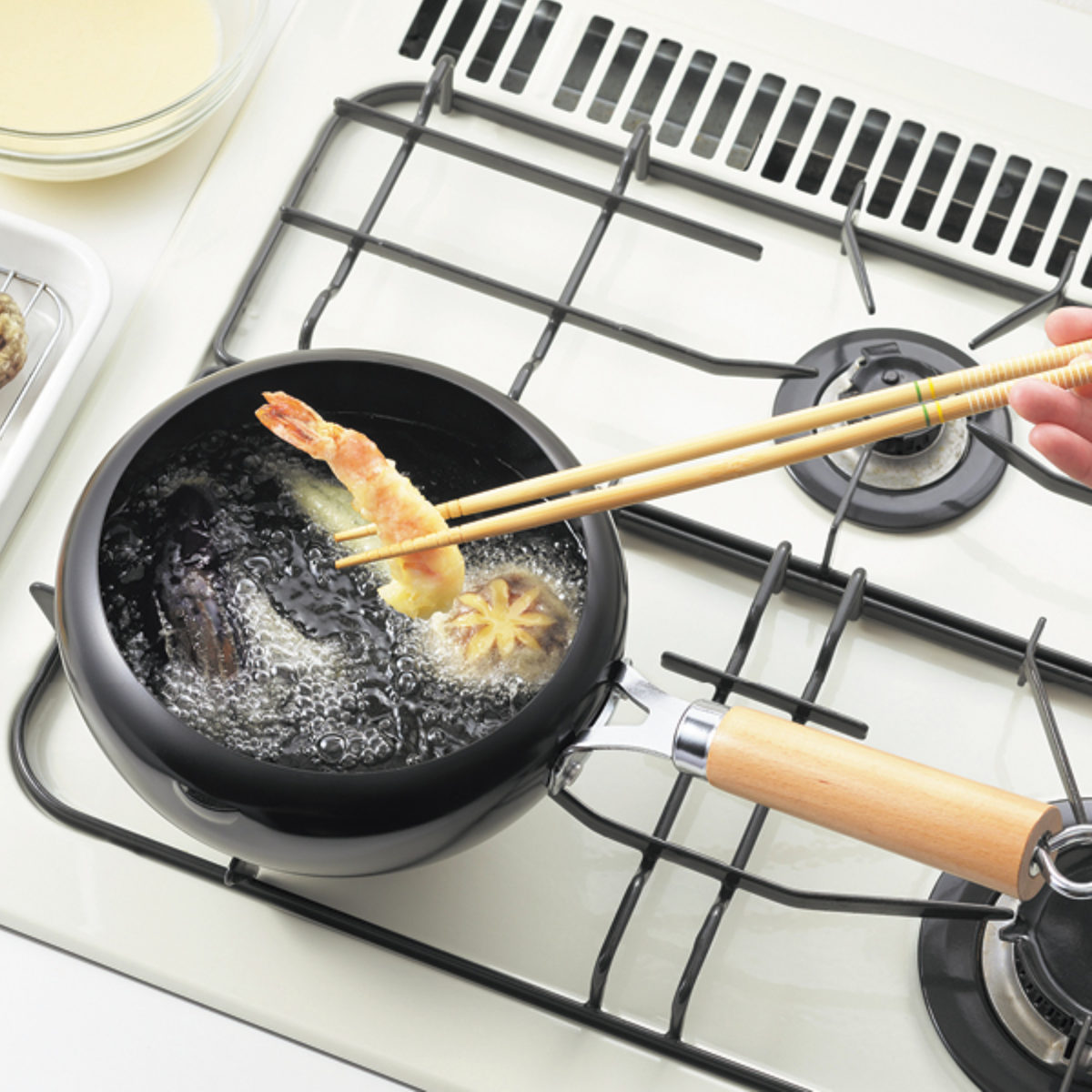 ●油はねを防ぎやすいガードタイプの鉄製片手天ぷら鍋です。