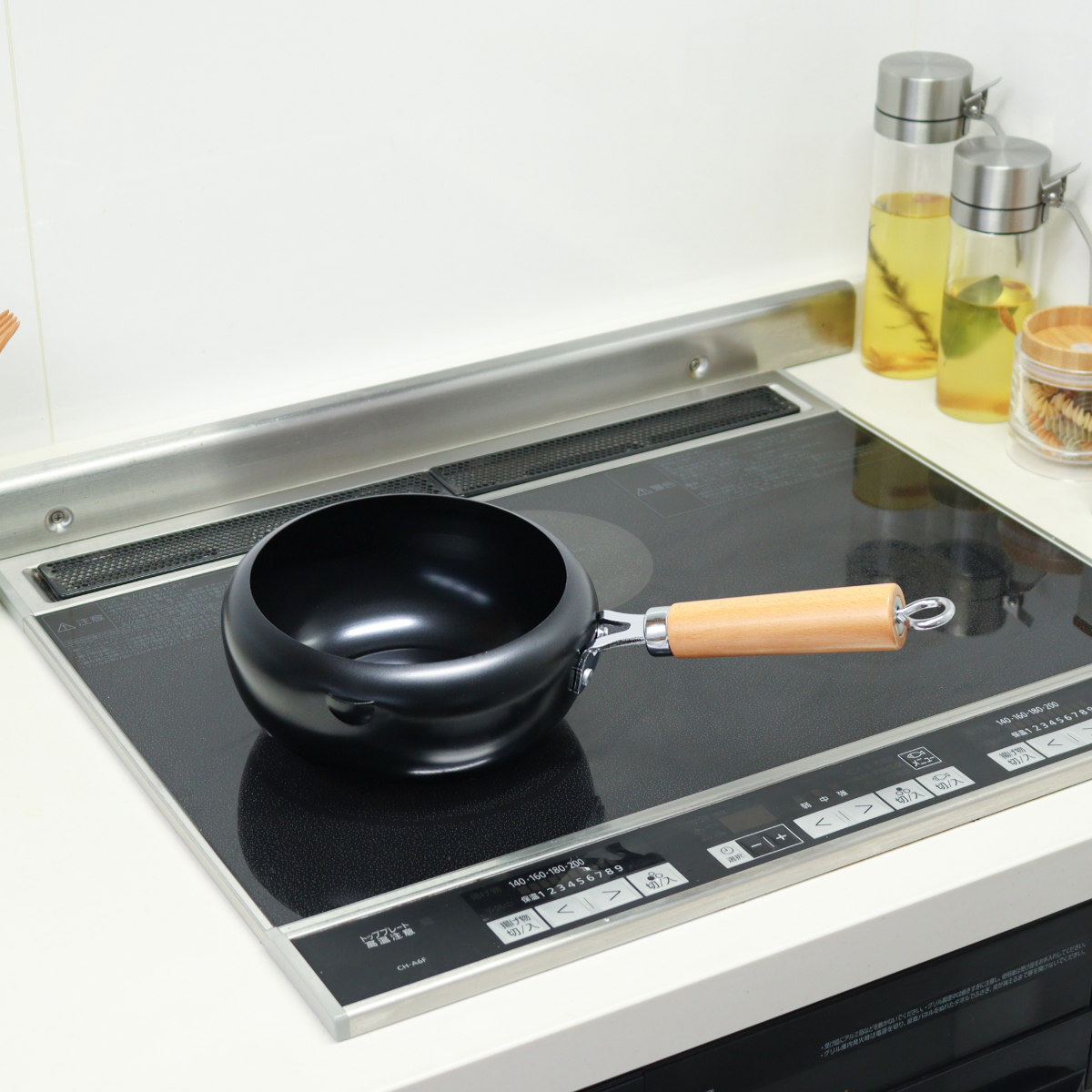 少量の揚げ物や、お弁当のおかず作りなどにも最適なサイズです。便利な片手鍋タイプなので普段使いしやすいです。ガスはもちろん、200VのIHやあらゆる熱源に対応しています。