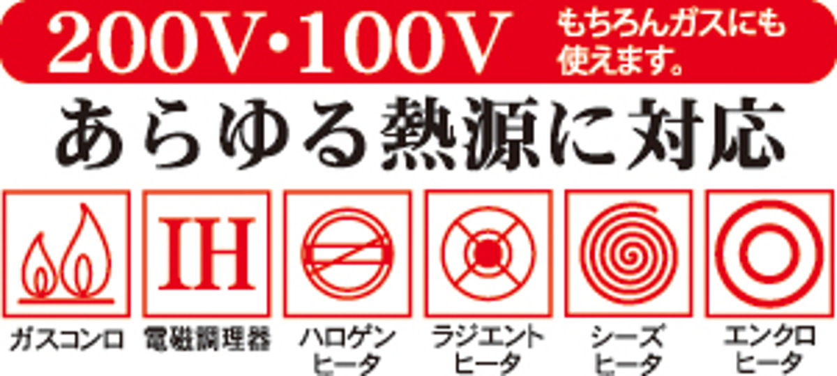 ●ガス火・IHをはじめあらゆる熱源に対応しています。