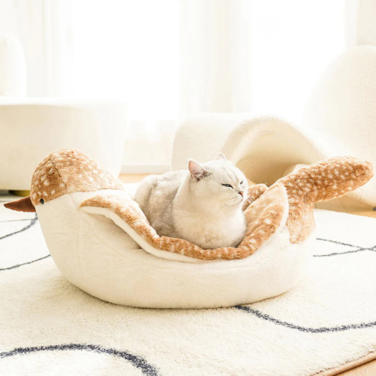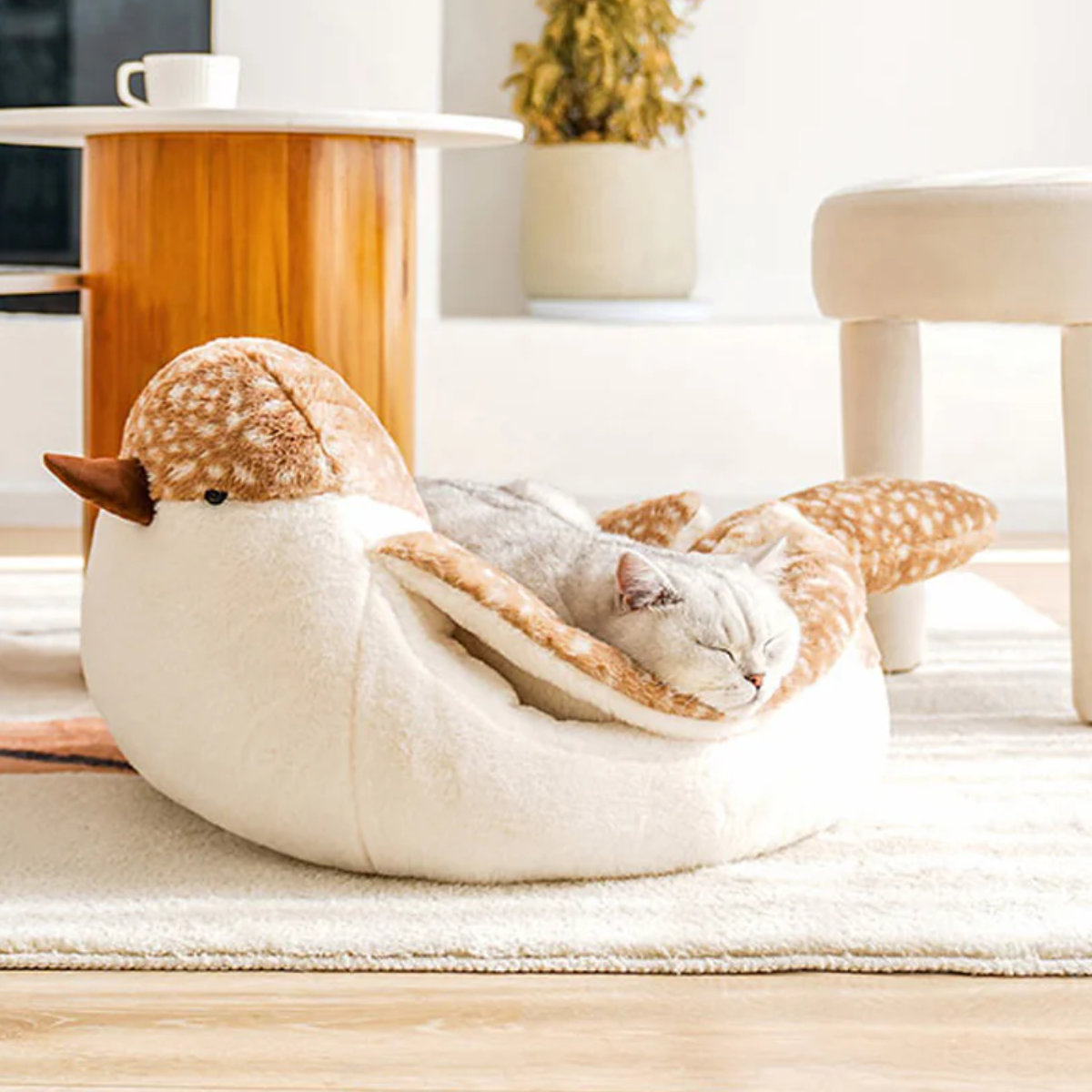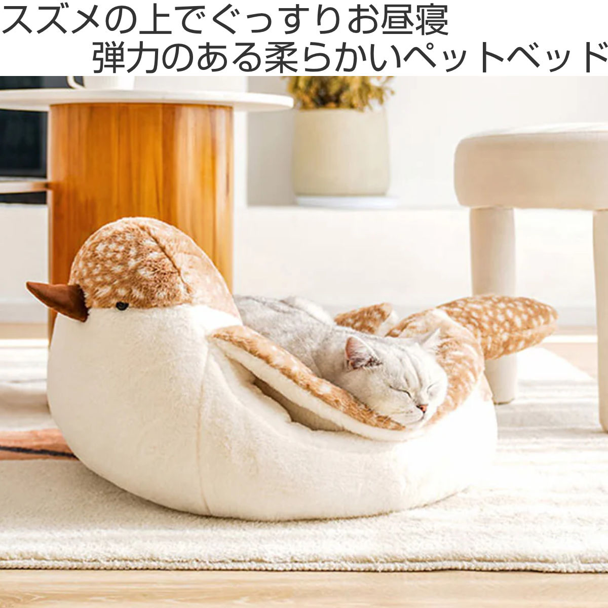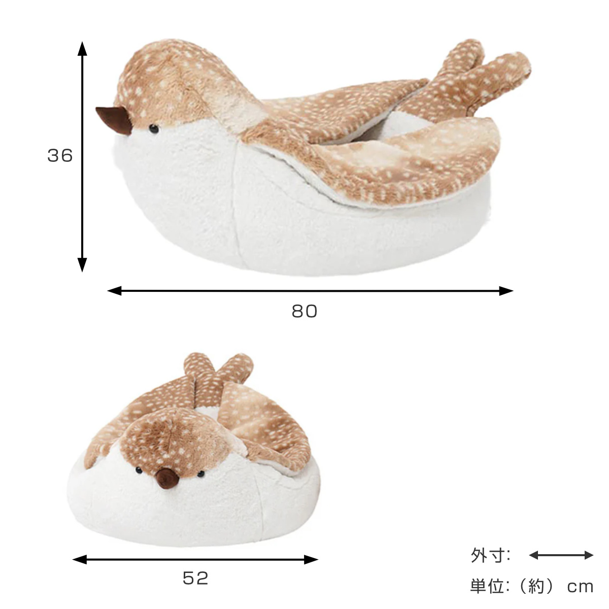 柔らかく快適なスズメのデザインが可愛いペット用ベットです。広いスペースでゆっくりと休むことができます。翼部分は厚くて暖かいので、安心して眠ることができます。