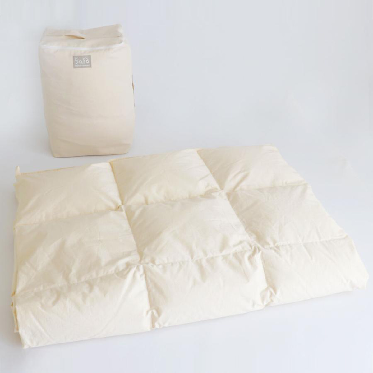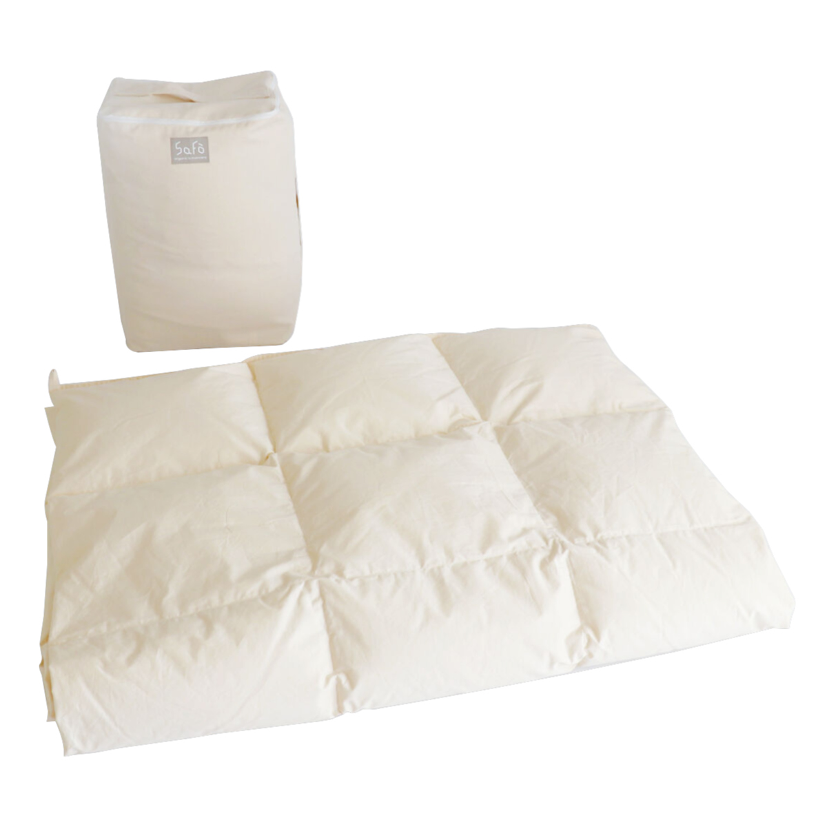 | 材質 | 側生地:綿100%(オーガニックコットン) 詰め物:ダウン93%、フェザー7%(台湾産ホワイトグース) |
