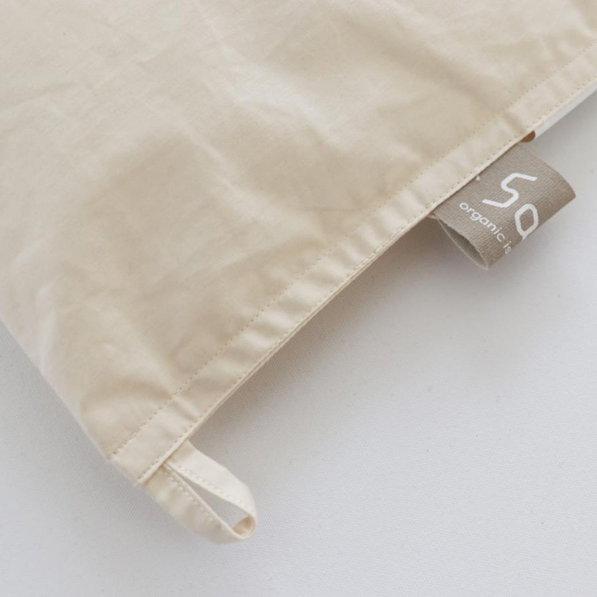 側生地のオーガニックコットン生地には、細かく、密度の高い織生地を使用しています。生地に施されているダウンプルーフ加工には、羽毛の吹き出しを防ぐだけでなく、ダニの侵入を防ぐ効果もあります。