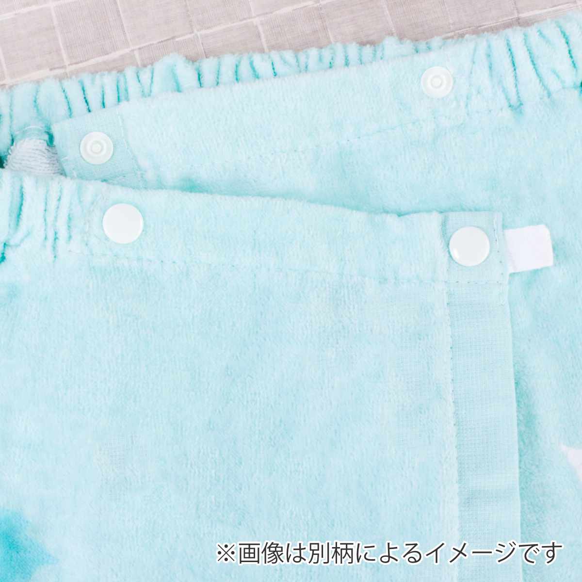 上部はゴムが入っているので伸縮し、早くラクに着替えられます。肌にやさしい綿100%なので小さなお子さまでも安心です。表はなめらかな肌触りのシャーリング生地、裏面はふわっとした風合いの吸水性に優れたパイル生地になっています。