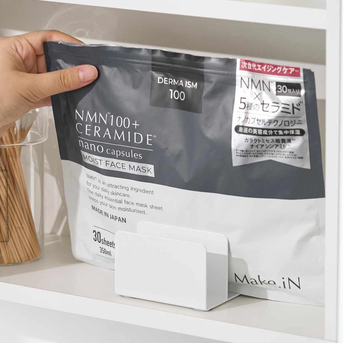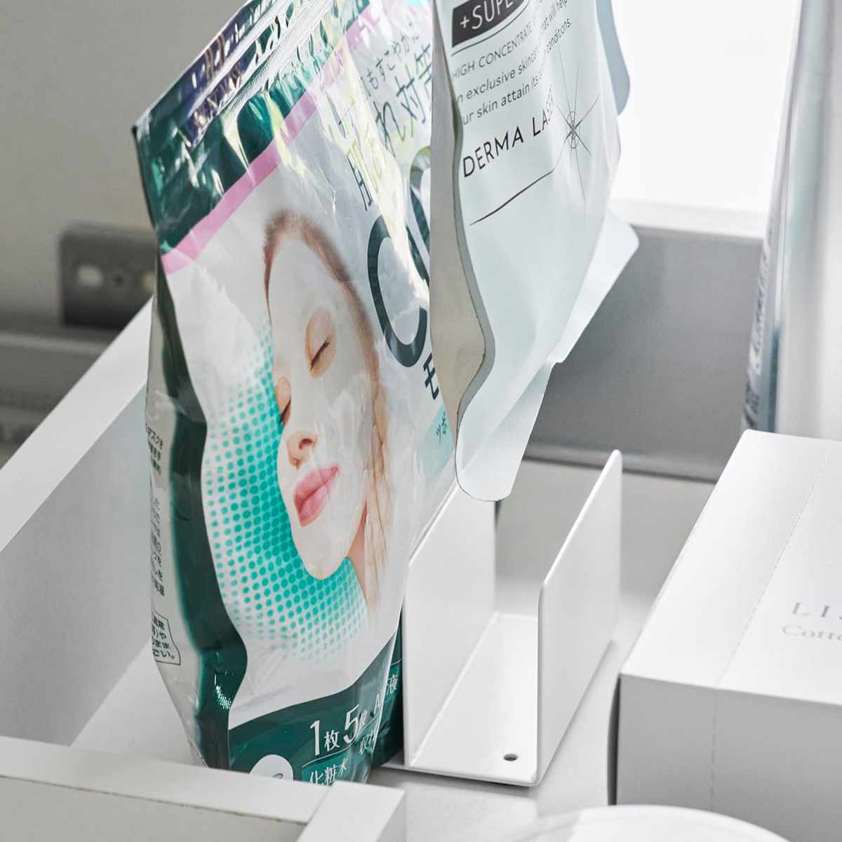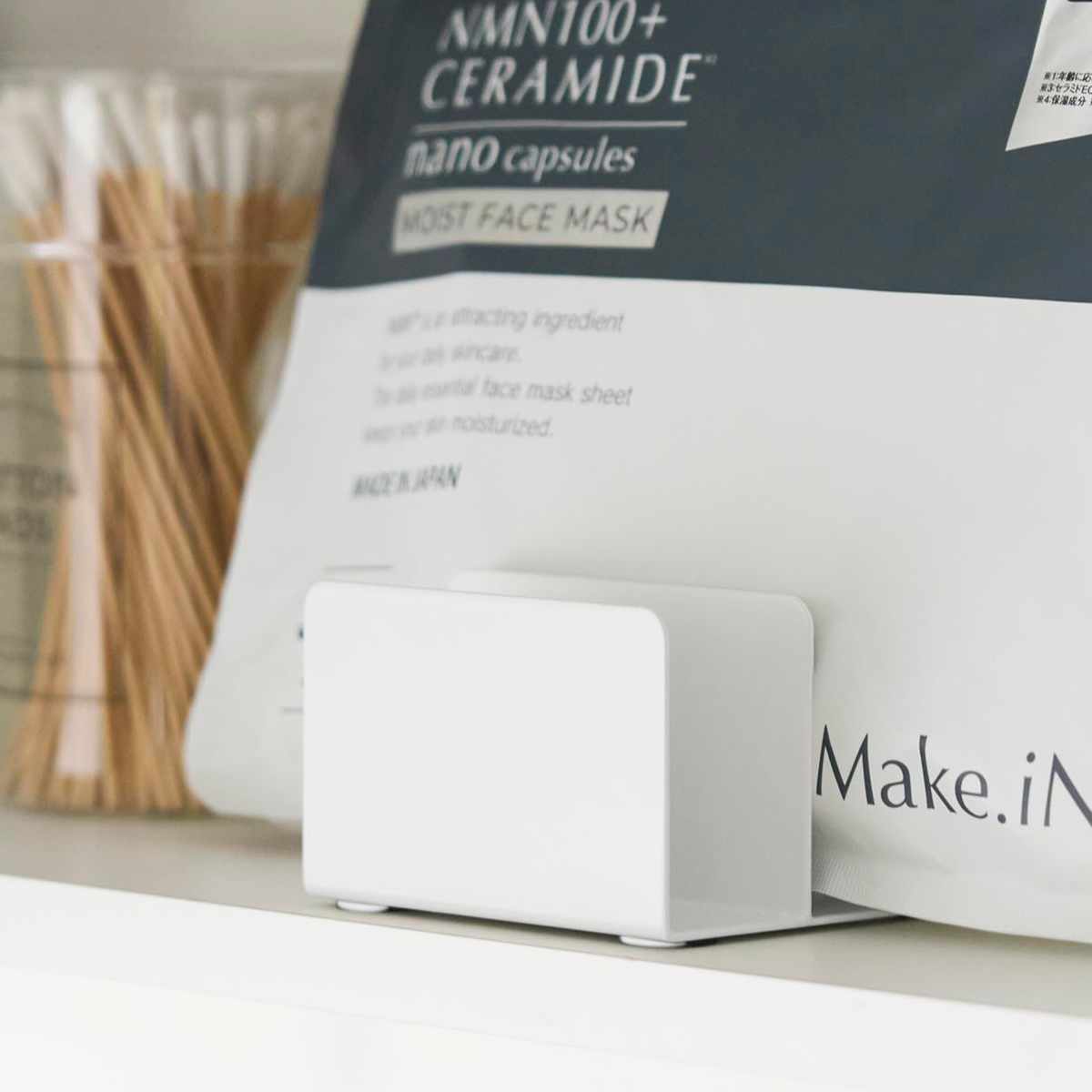 スタンドの仕切り幅が前・後で違うので、フェイスマスクの内容量に合わせて収納ができます。