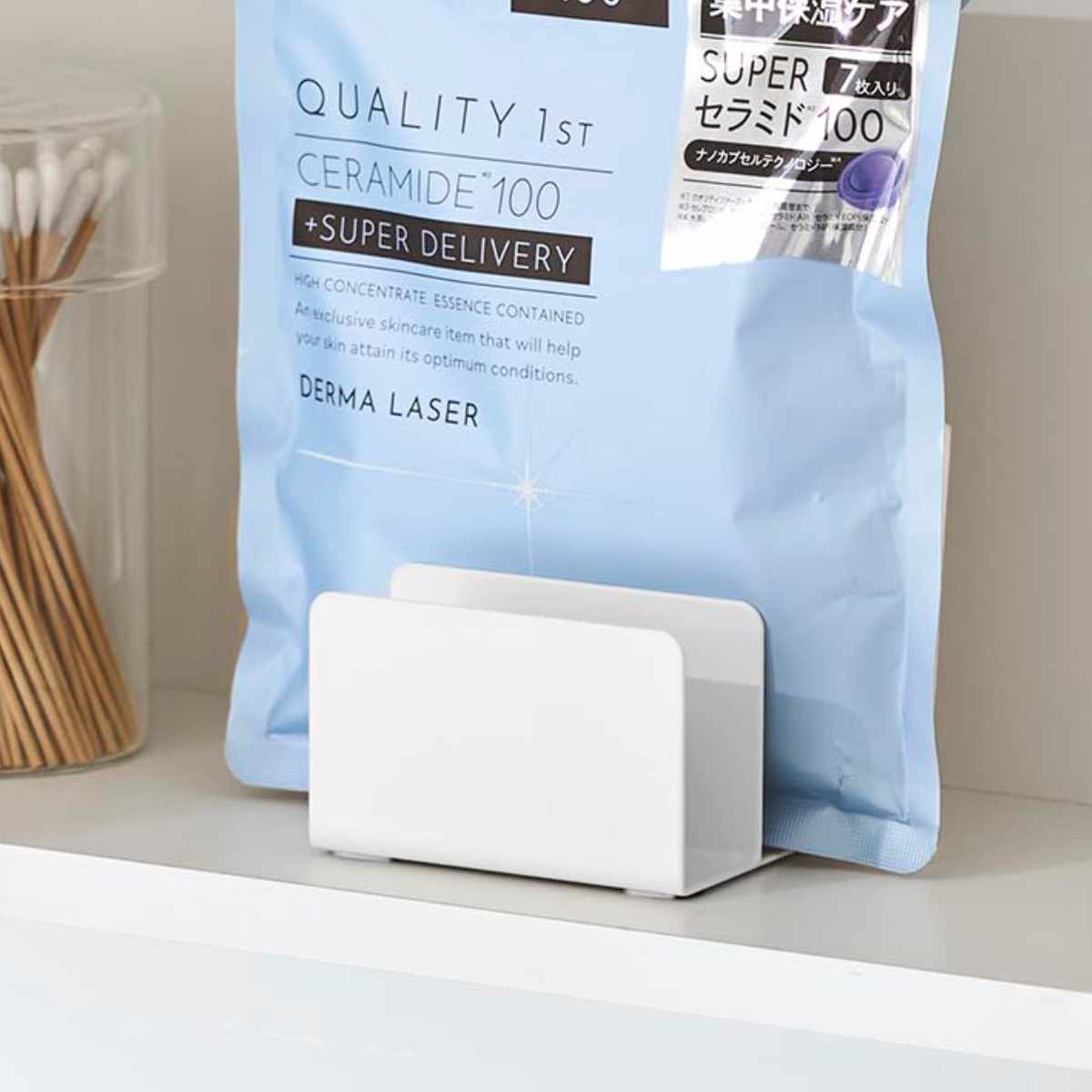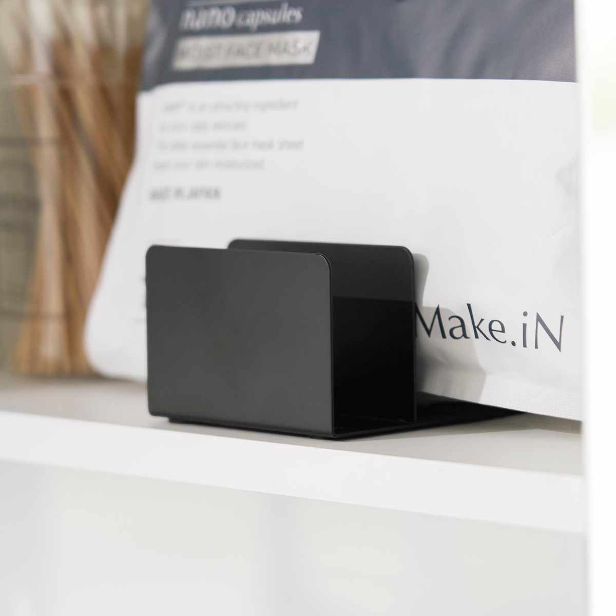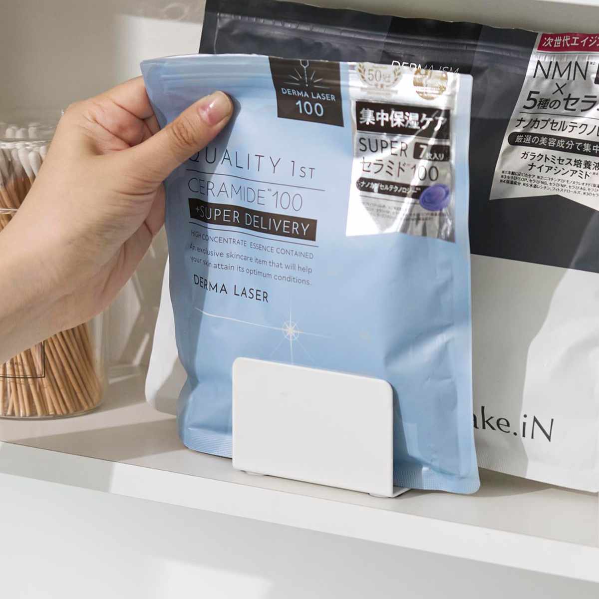 スタンドの仕切り幅が前・後で違うので、フェイスマスクの内容量に合わせて収納ができます。