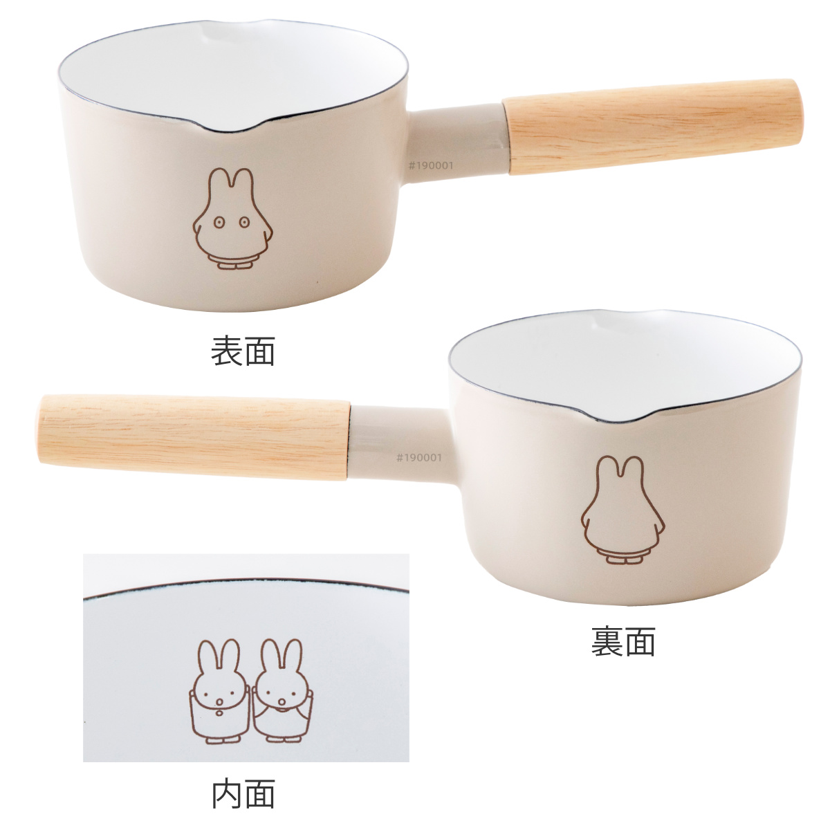 ミルクパン 12cm ガス火専用 MIFFY PASTEL 富士ホーロー Honey Ware ( ハニーウェア ガス火対応 片手鍋 ソースパン ホーロー鍋 ミッフィー 12センチ 片手なべ ほうろう鍋 琺瑯鍋 木柄 両口鍋 小鍋 ホーロー 鍋 ミニ 小さい 小ぶり ) 【グレージュ】