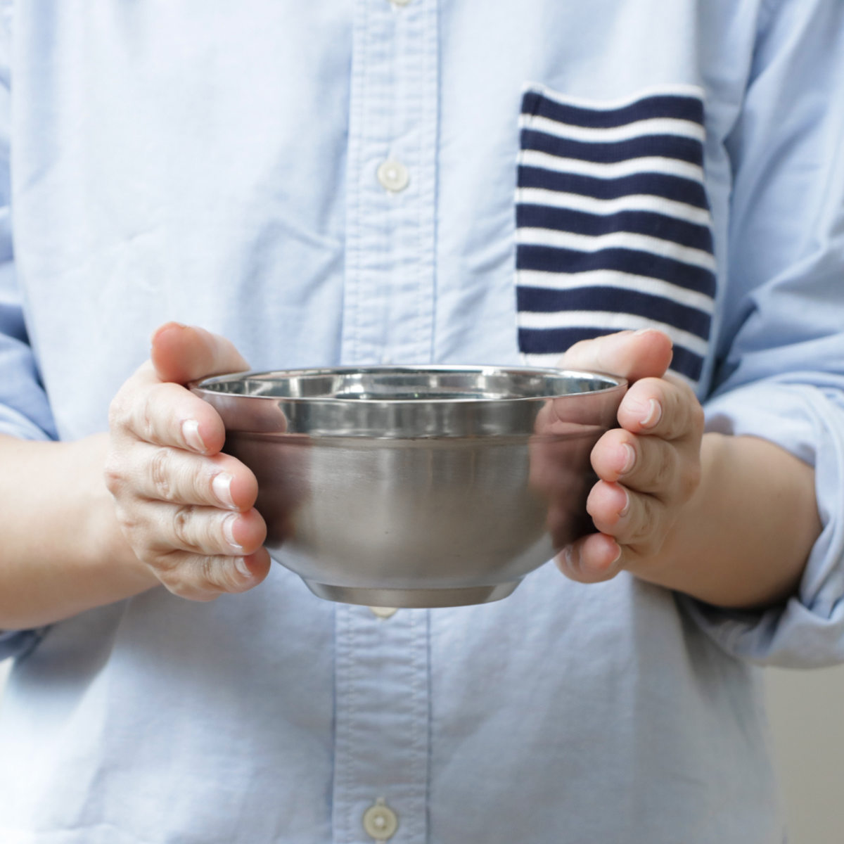 金属だからずっしりと重たい印象ですが、持ってみると軽さに驚きます。わずか約80gの重量なので、食べる時や調理、配膳、後片づけの際にも便利です。