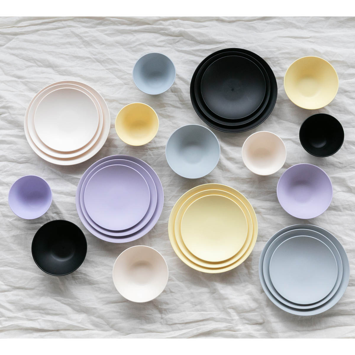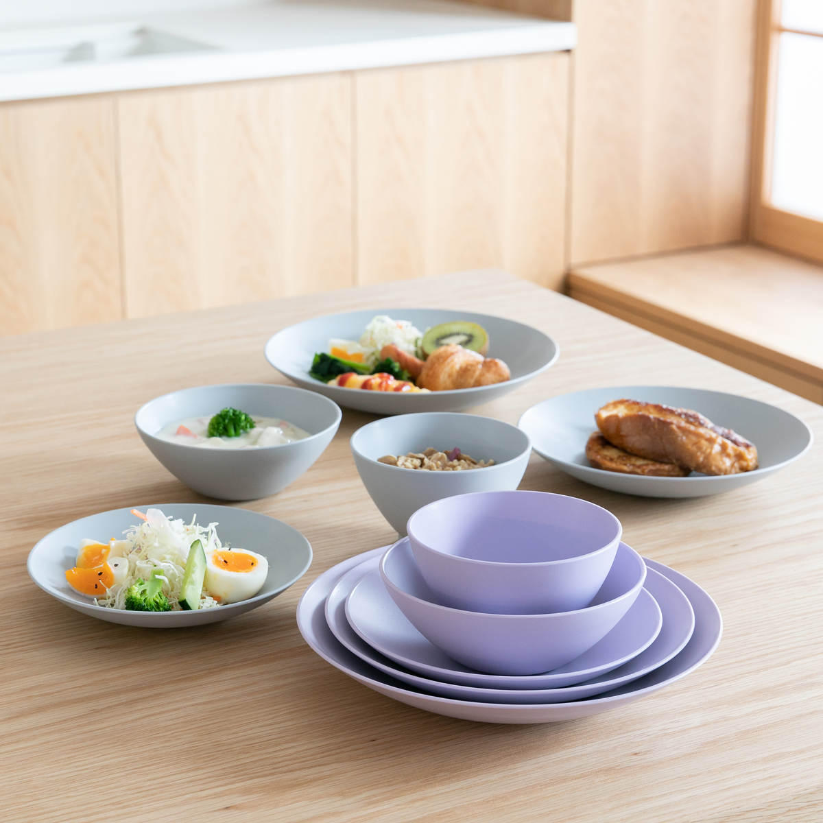 お米由来の国産バイオマスプラスチック「ライスレジン(R)」で作られた地球に優しい食器シリーズ「ほわり」。古米や廃棄米を使用することによって持続可能な社会への貢献にも繋がります。豊富なカラーリングと、陶器にも遜色ないフォルムが魅力です。