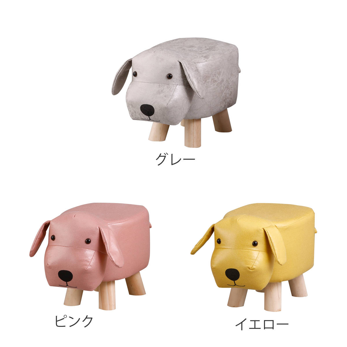 優しい色合いにぬいぐるみのような可愛らしい表情が魅力的な、イヌモチーフのスツールです。木製の脚もポイント。様々な場所で幅広く使用でき、置くだけで温かみのある可愛らしい雰囲気を演出してくれます。