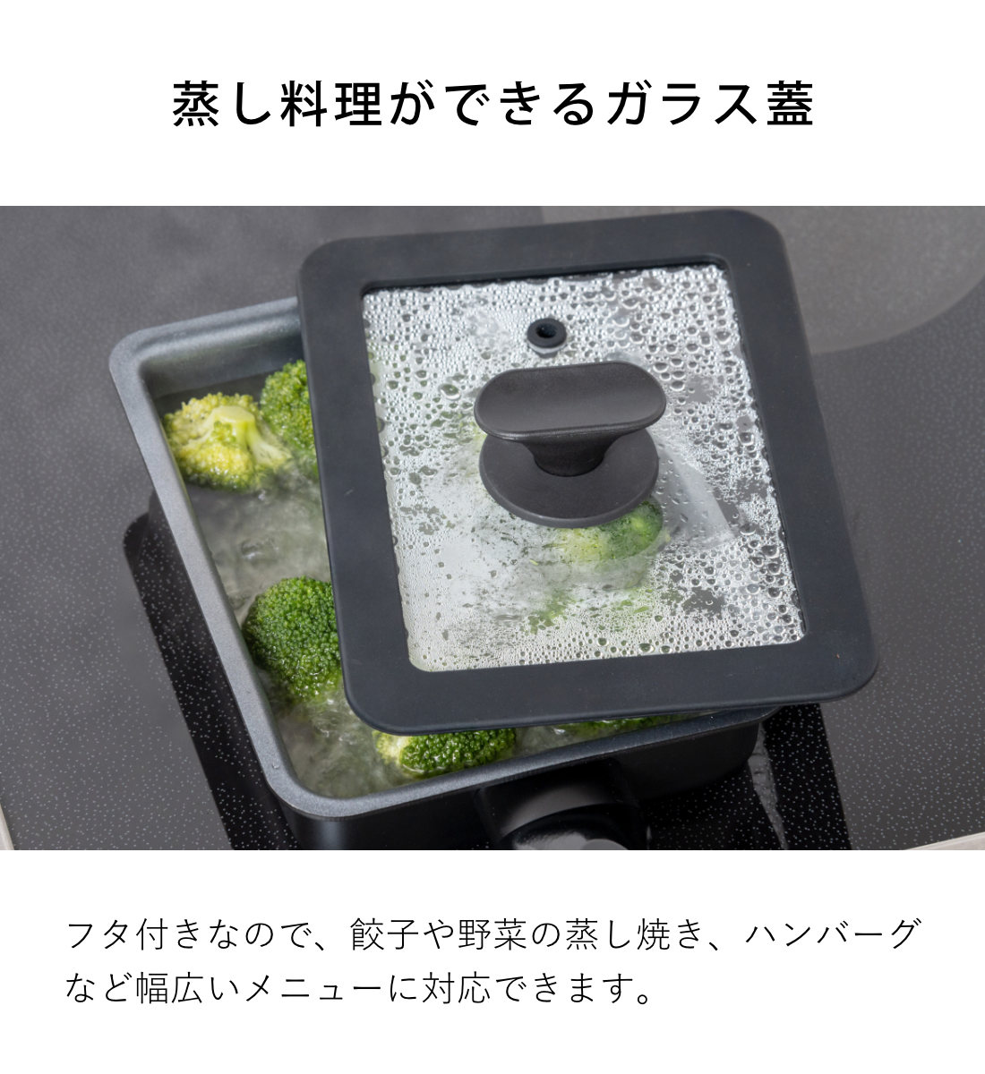 関連キーワード:ihOK IH使える ガスOK 直火OK 熱伝導 たまご焼き 玉子焼き用 卵焼き用 たまご焼き用 玉子フライパン 卵焼きフライパン たまご焼きフライパン 蓋つき フタ付き シリコン蓋 蒸し焼き 蒸し野菜 餃子 厚焼き玉子 厚焼き卵 ひとり暮らし 1人暮らし 四角いフライパン 角型フライパン お弁当作り ガラス窓付き ふた 時短調理 キッチン用品 キッチンツール 台所用品 調理器具 調理道具 ガス火対応フライパン IH対応フライパン ガス火使える おすすめ オススメ 便利 役立つ 丈夫 シンプル ブラック 黒