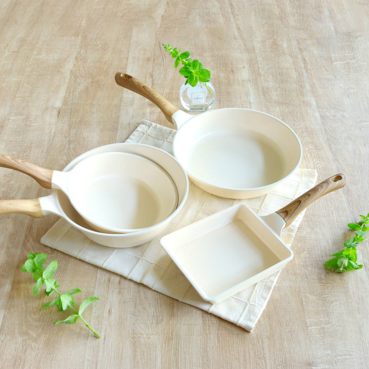 フライパン20cm、フライパン26cm、深型フライパン24cm、卵焼き器のラインナップがあり、家族構成や用途に合わせてお選びいただけます。