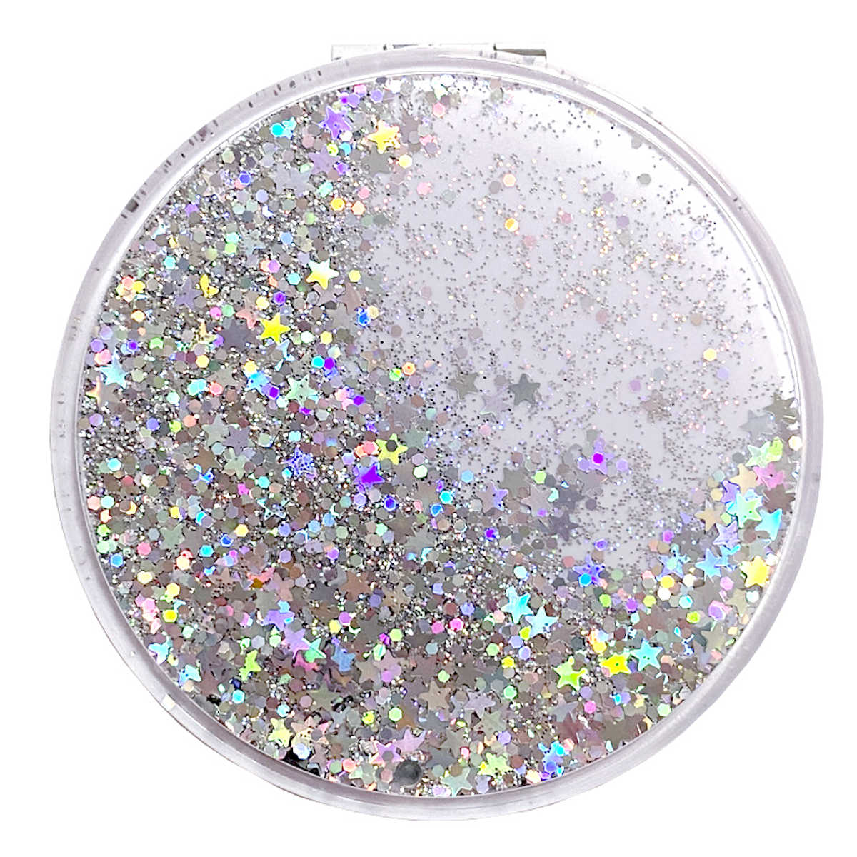 ●グリッターがキラキラ流れるコンパクトミラーです。