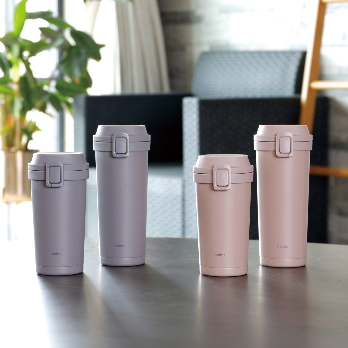シンプルデザインのお洒落なワンタッチ式タンブラーです。密栓タイプでしっかりロックできるので、ボトルのようにバッグに入れて持ち運べます。卓上に置けば、リラックスタイムや仕事中にも気軽に使えるタンブラーに早変わり。保温・保冷機能を備えているので、季節を問わずオールシーズン活躍します。